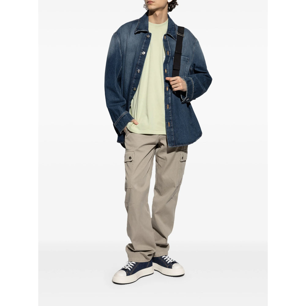 light green crew neck short sleeves graphic print at the chest graphic print to the rear