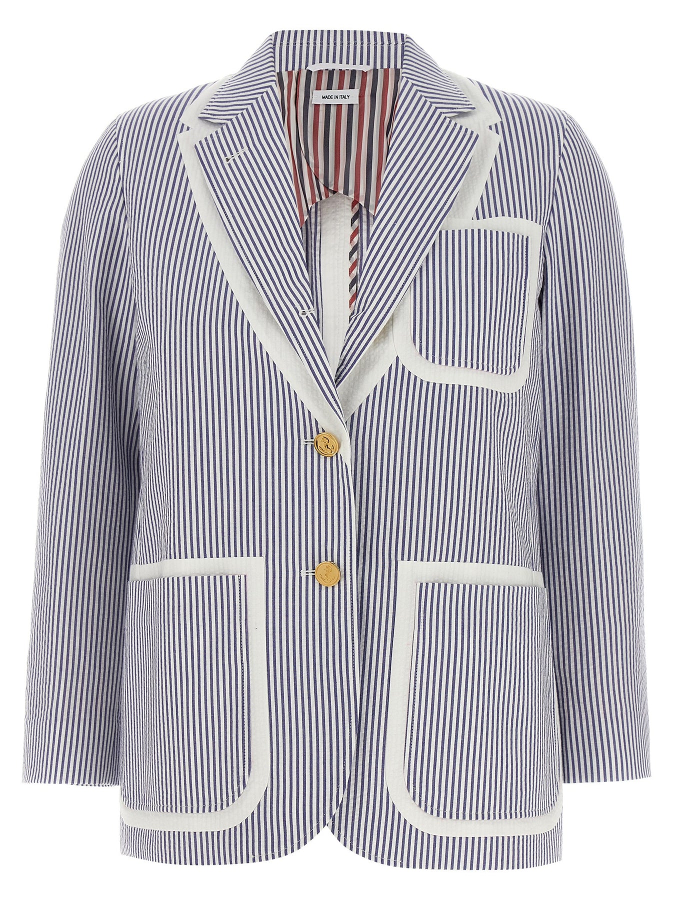 Single-Breasted Seersucker Blazer Blazers Multicolor