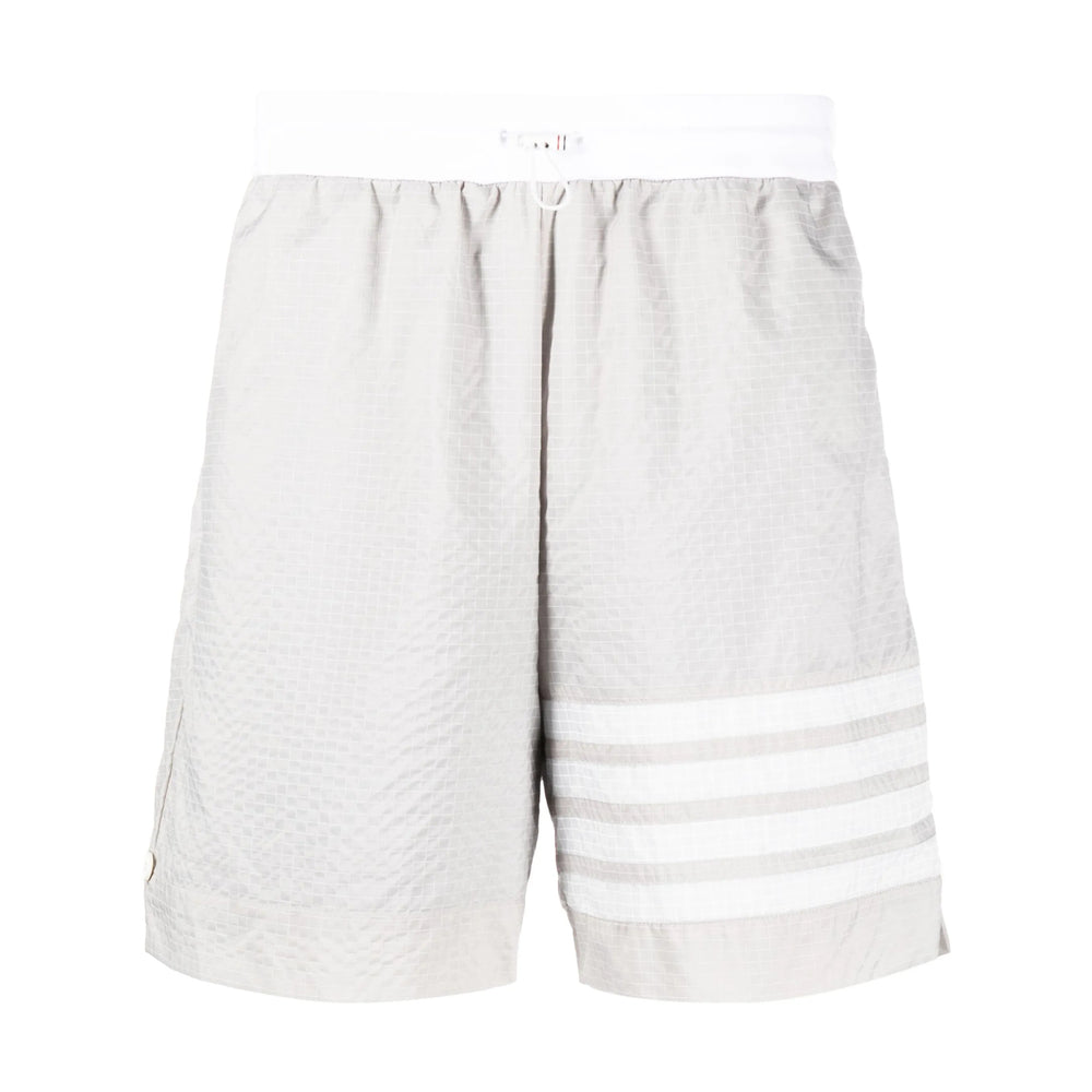 light grey/white ripstop texture signature 4-Bar stripe signature grosgrain loop tab RWB stripe drawstring fastening waist thigh-length