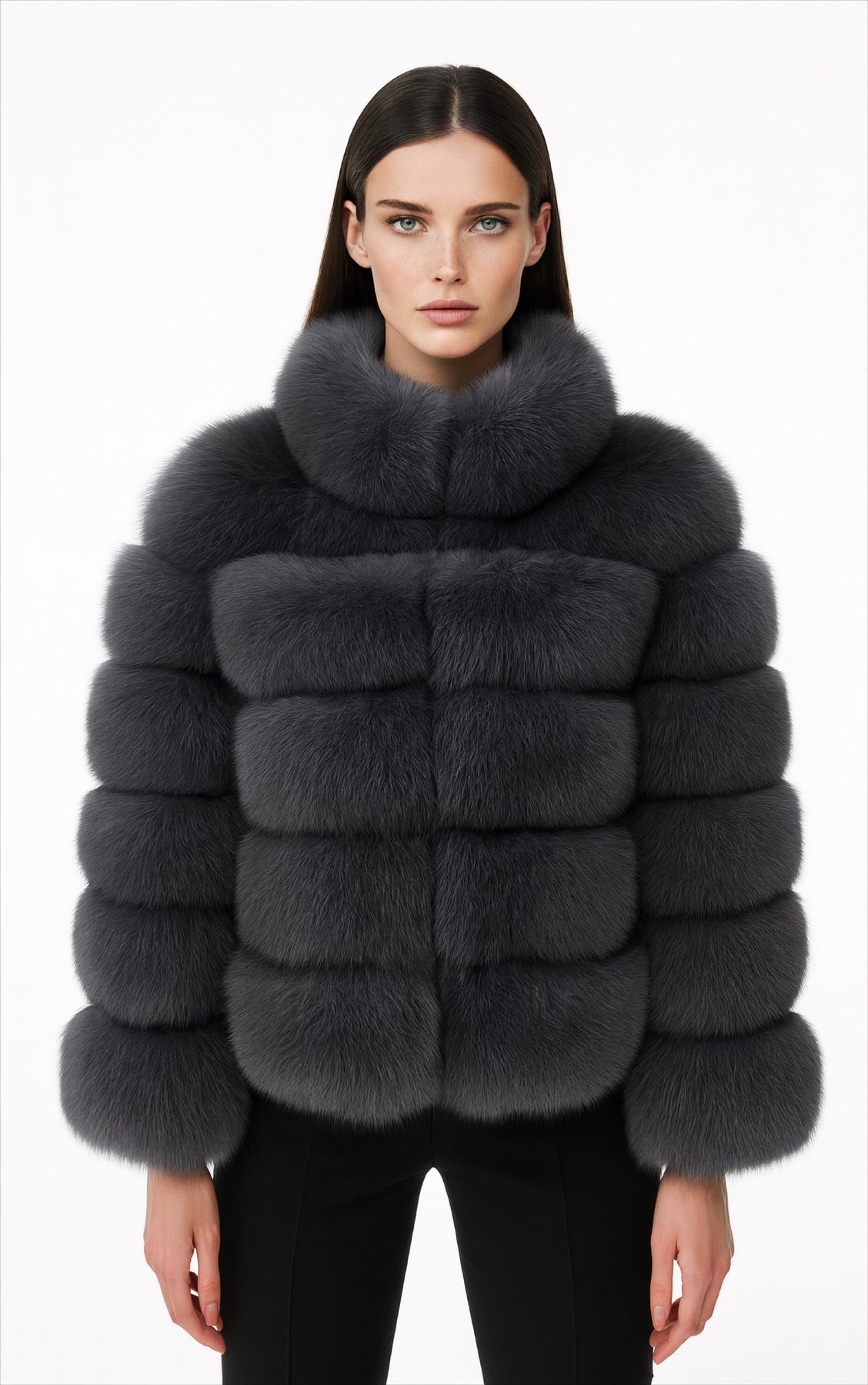 Giacca Enry Grigio scuro in Pelliccia di Volpe