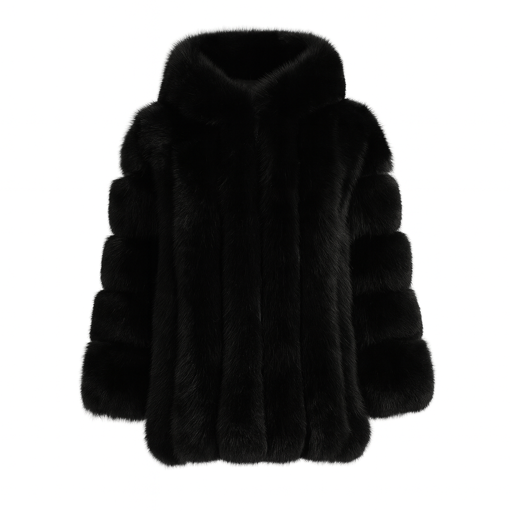 Giacca Paris con Cappuccio Nera in Pelliccia di Volpe