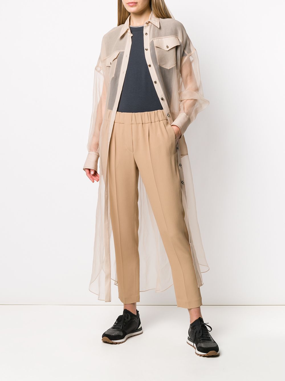 Spruce blue cotton blend brass-embellished crew-neck T-shirt from Brunello Cucinelli featuring micro brass embellishments, a crew neck, a rear keyhole detail, short sleeves, a relaxed fit and a straight hem.