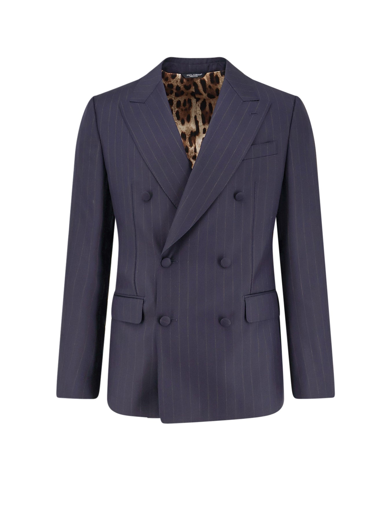 Double-breasted Covered button closure Front flap pockets Peak lapel Animal print lining Made in Italy 100% virgin wool Lining: 100% polyester SKU: G2TV8TFR227S8052