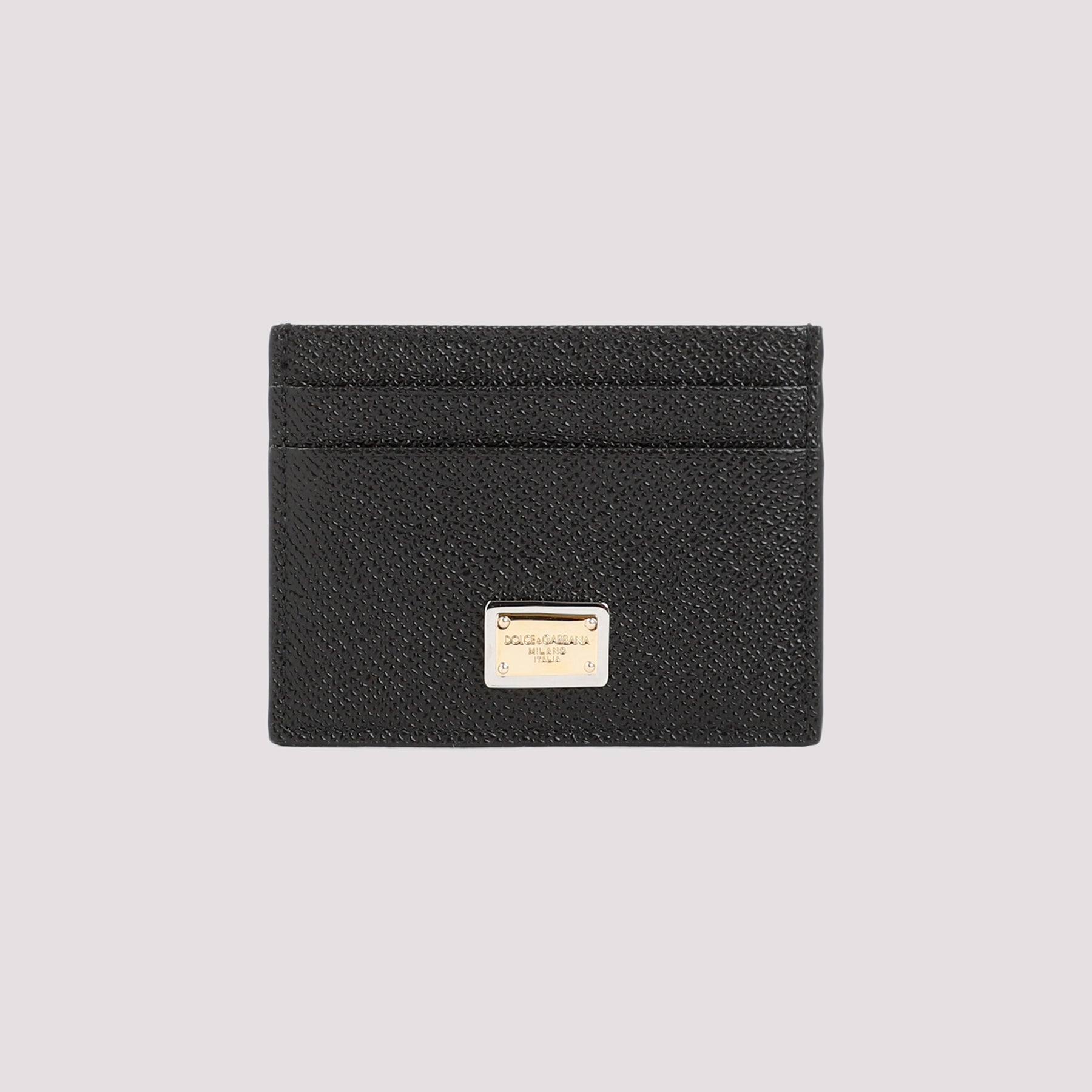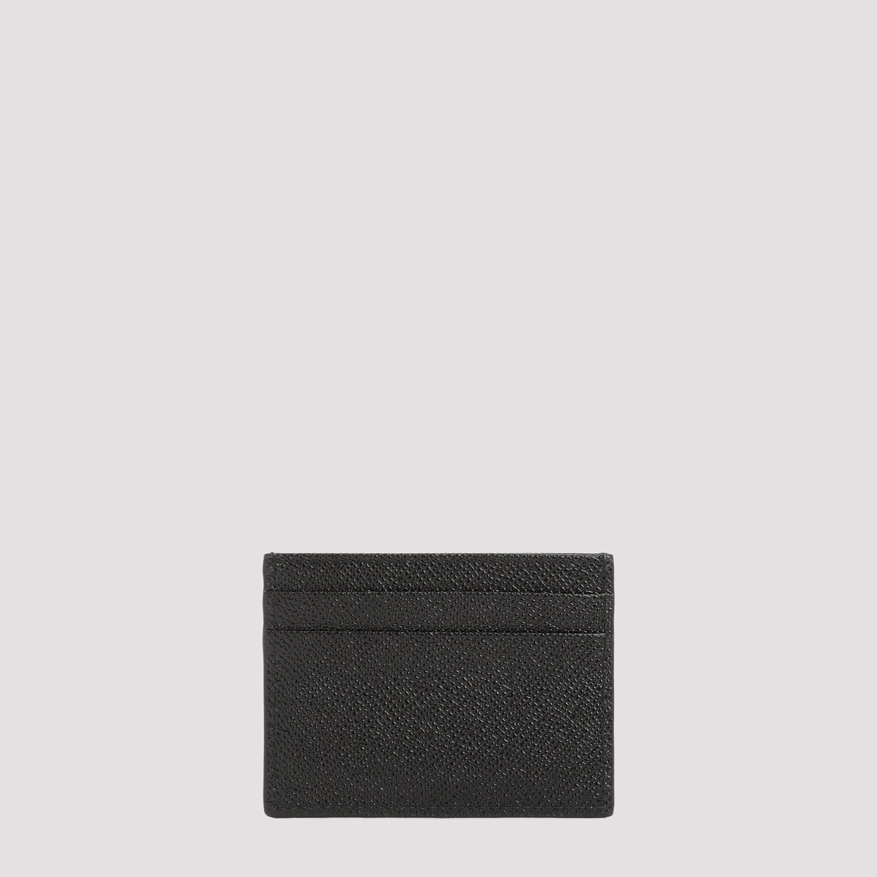 Dolce & Gabbana Black Leather Cardholder with logo plaque. Black leather, logo plaque on front, 6-card slots, tonal stitching.
