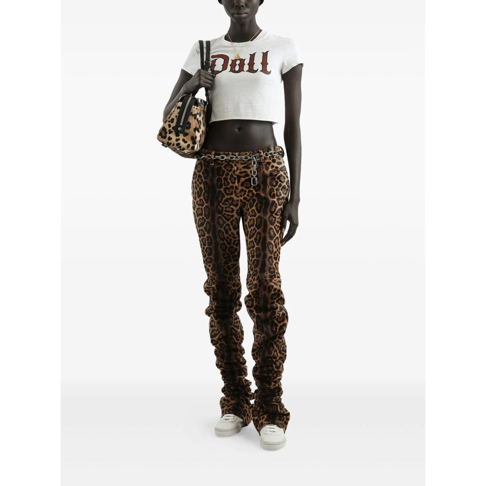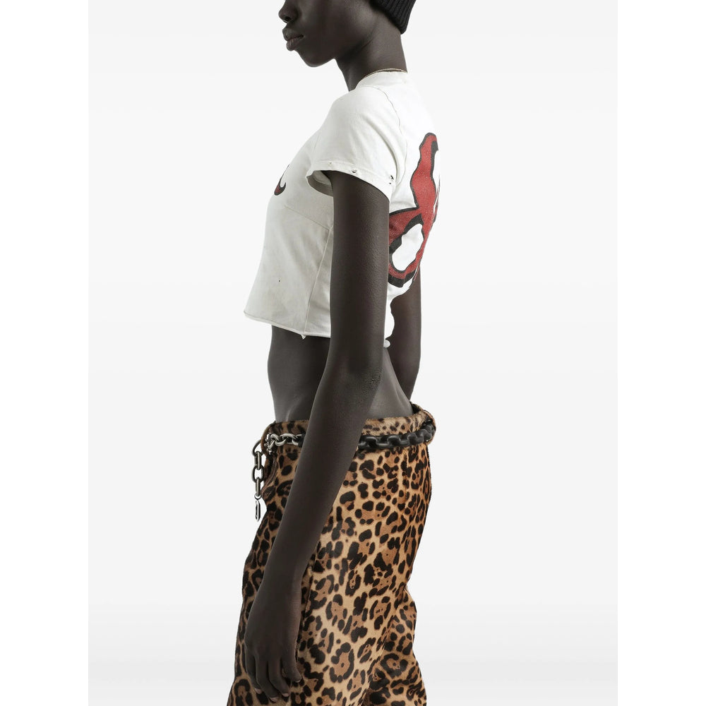 off-white doll print short sleeves cropped hem distressed edges round neck