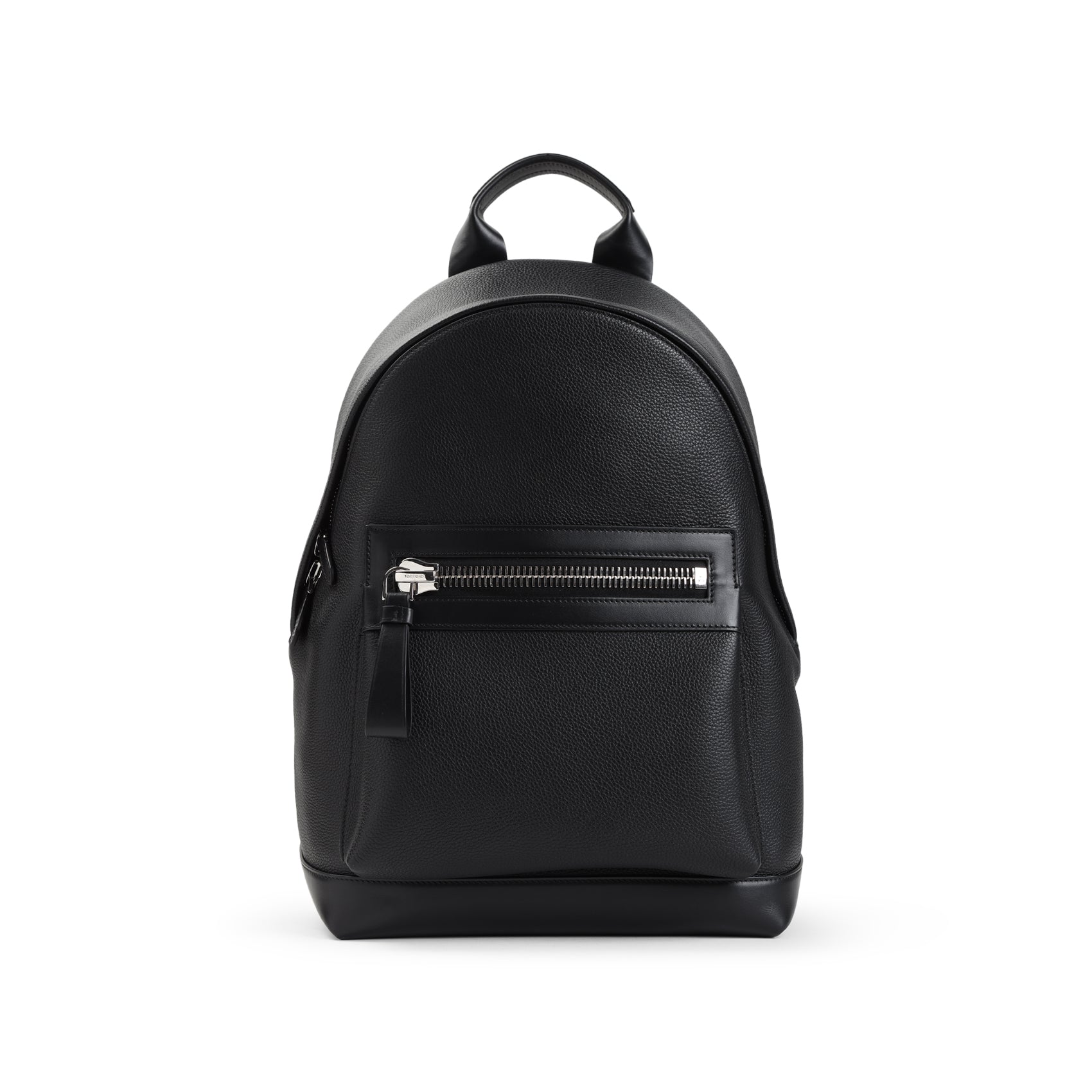Tom Ford Black Calf Leather Backpack. Pure black calf leather backpack, top handle, top zipped fastening, front zipped pocket, back padded adjustable shoulder strap, one main compartment.