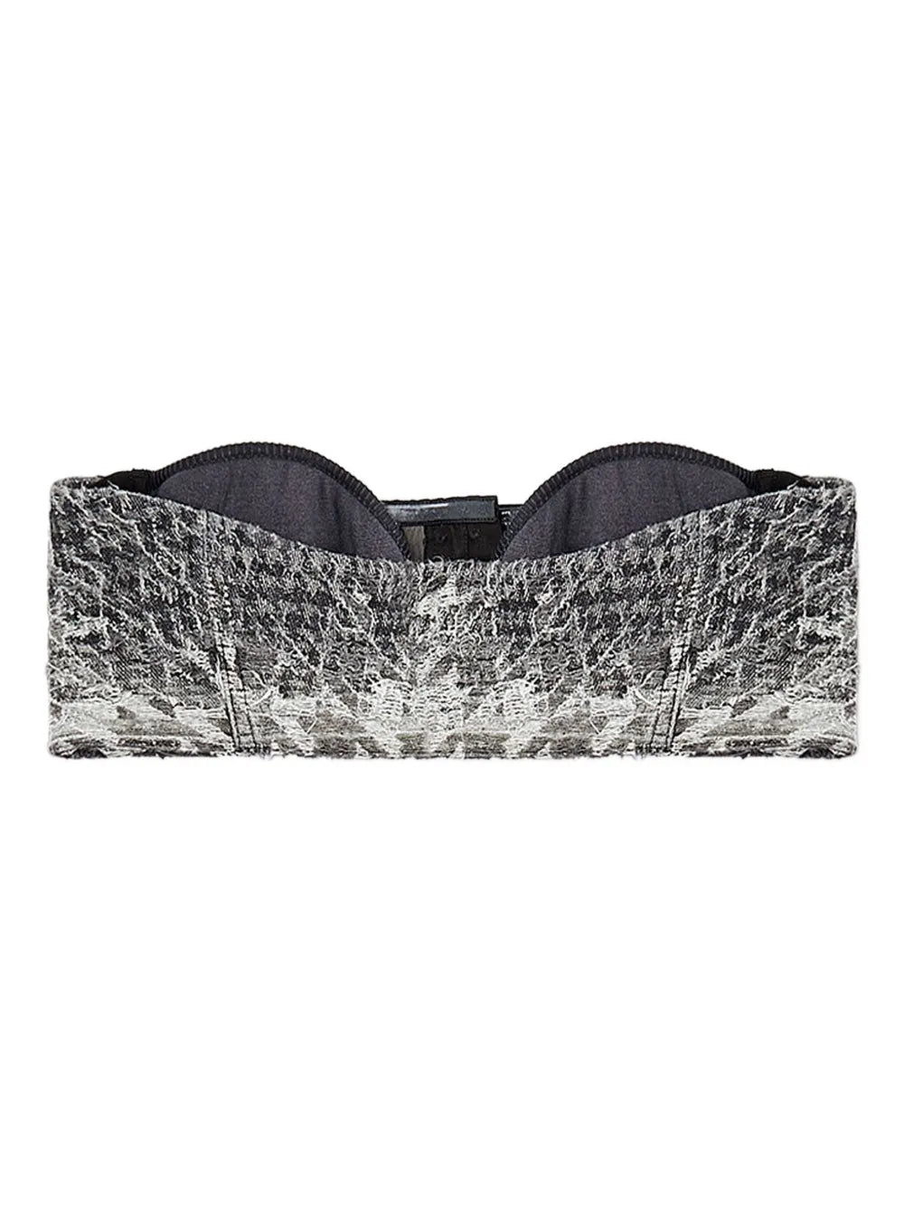 bralette in denim jacquard Prodotto in Italia Punti salienti nero jacquard denim Principe di Galles design senza spalline chiusura con cerniera cotone Composizione Cotone 100% Istruzioni per il lavaggio Lavaggio in lavatrice ID A215120CEBN