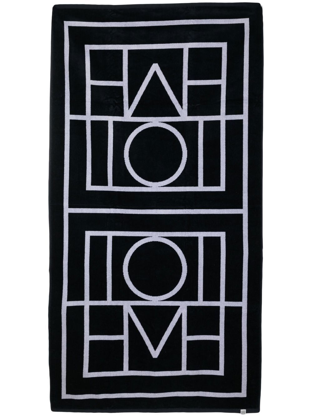 navy blue/off-white organic cotton terry-cloth effect monogram jacquard straight hem