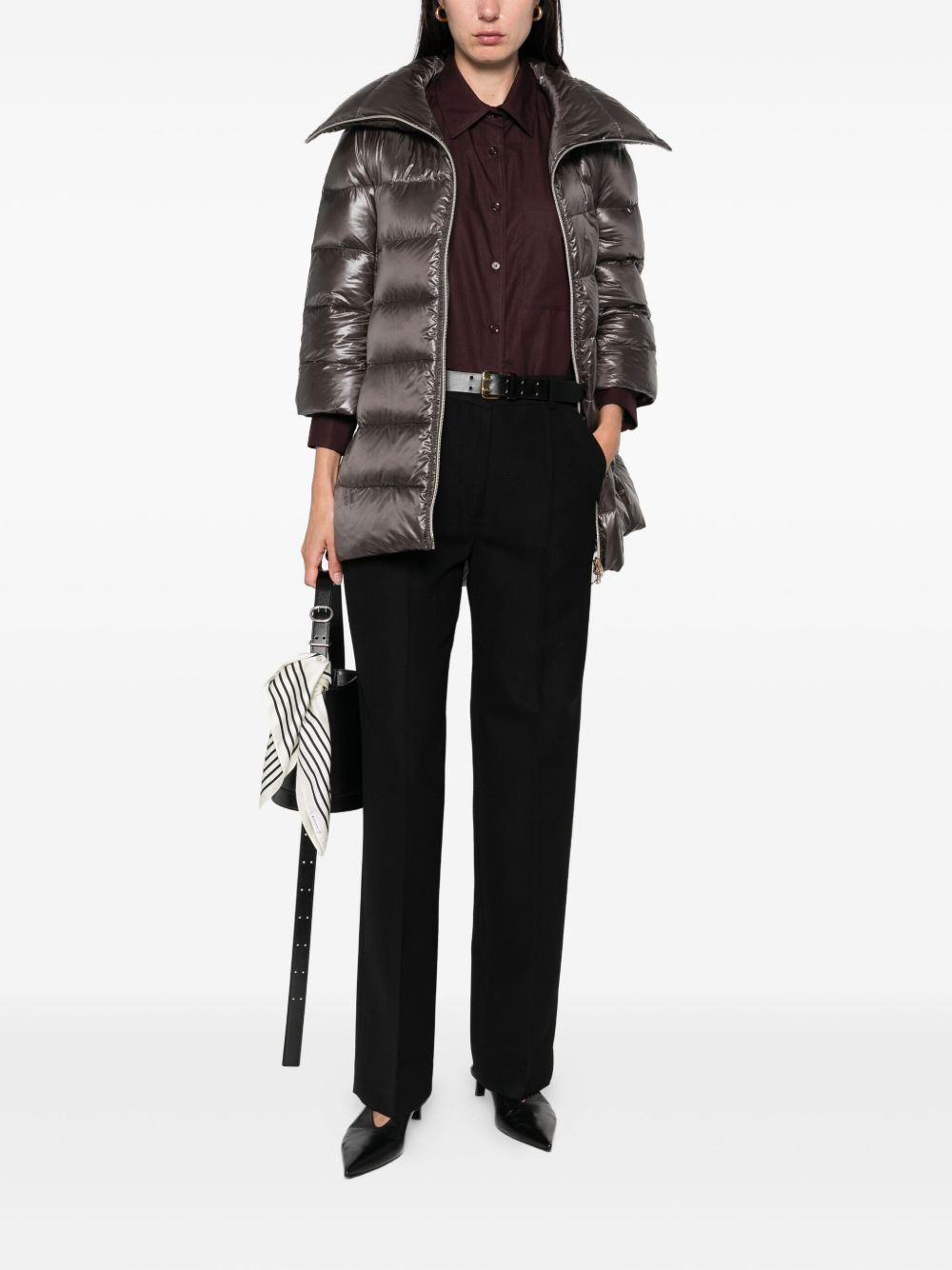 black wool fabric pleated front side pockets