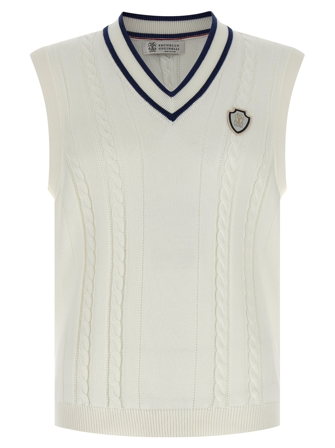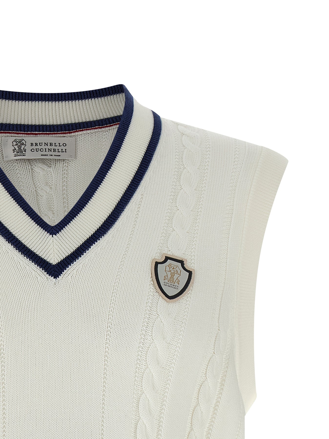 Brunello Cucinelli Cotton Braided Vest Gilet - Bianco | 206307f887881c67eee0a047a345ee0290b4ab95