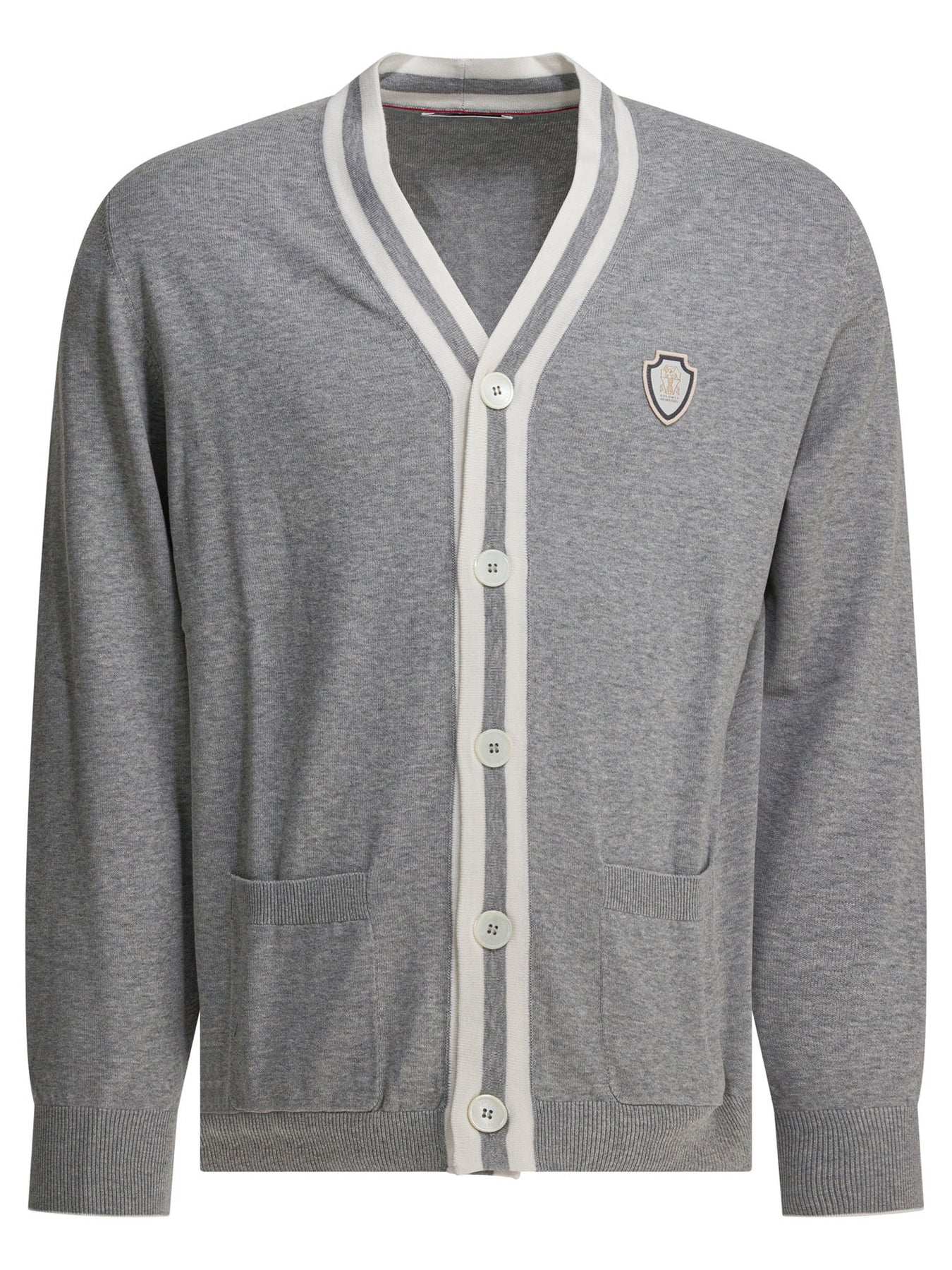 Cotton Cardigan With Logo Knitwear Grey