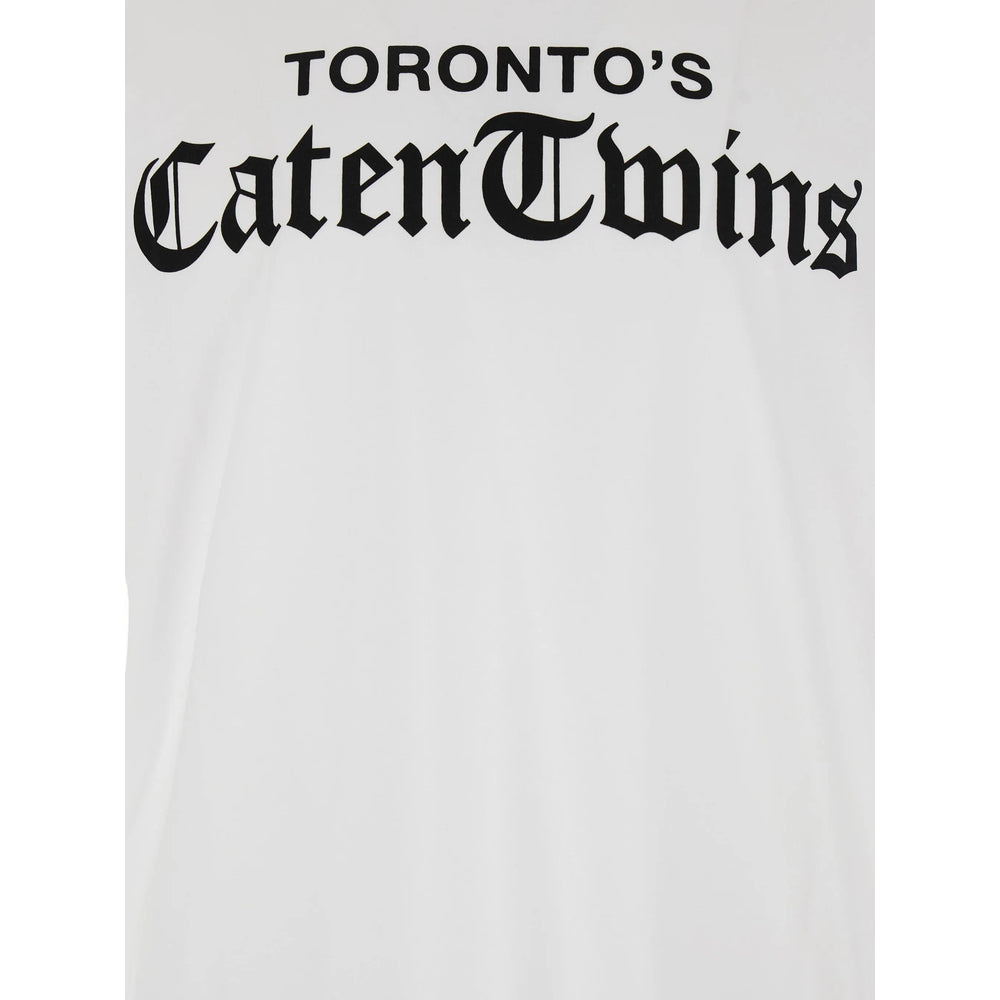 white short sleeves crew neck "Toronto's Catentwins" graphic print