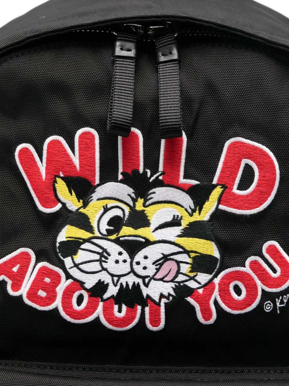 Zaino Wild Tiger Caratteristiche nero stampa grafica manico tasca con zip sul davanti chiusura superiore con zip spallacci regolabili Composizione Esterno: poliestere 100% Fodera: cotone 100% ID FG55SA603F21 Misure prodotto Profondità 12 cm Altezza 42 cm Larghezza 34 cm