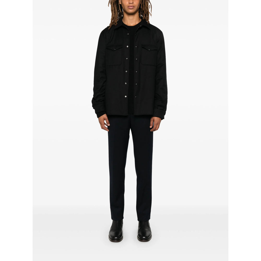 midnight blue virgin wool blend twill weave concealed front button, hook and zip fastening mid-rise belt loops two side slash pockets pressed crease two rear button-fastening pockets tapered leg