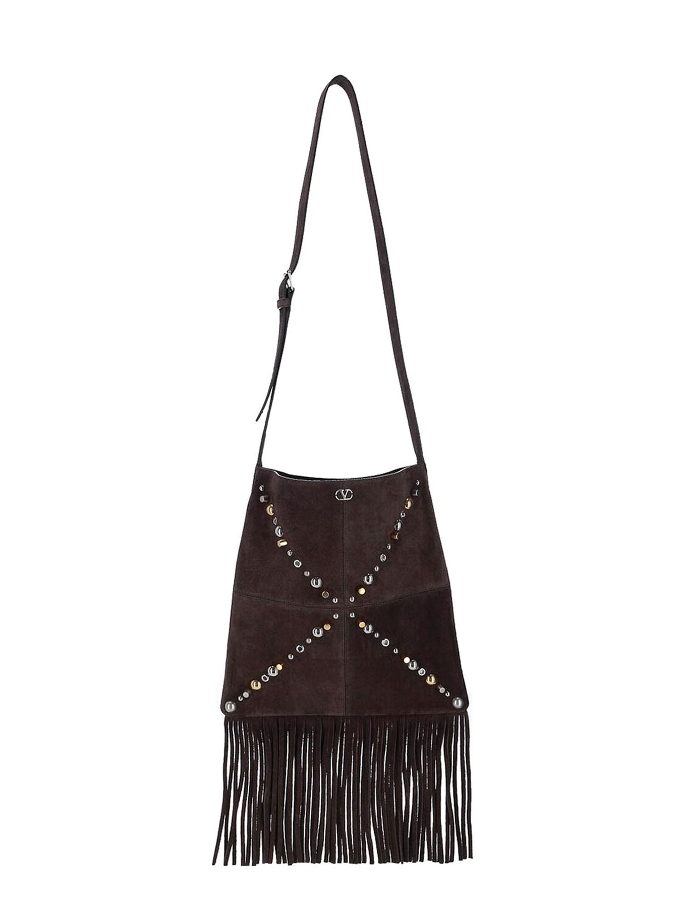 Adjustable shoulder strap Stud detail on the front With fringe Made in Italy Suede W: 30cm, H: 31cm, D: 3cm SKU: 8Y2B0R31ADG0TO