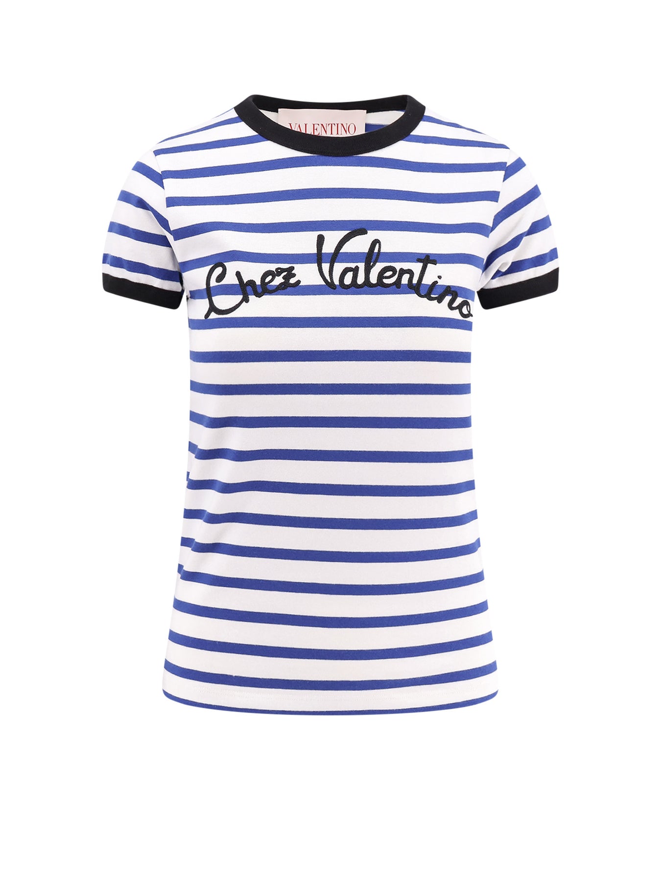 SKU: 6B3MG24P961_CR1 - Ribbed crew-neck short sleeve with ribbed profile 'chez valentino' embroidery made in italy 100% cotton