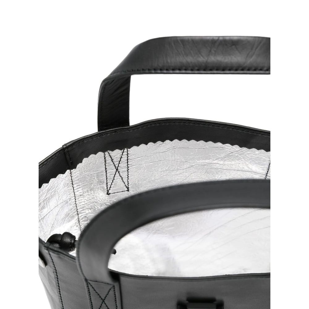 black calf leather orb emblem top handles clasp fastening silver foil interior