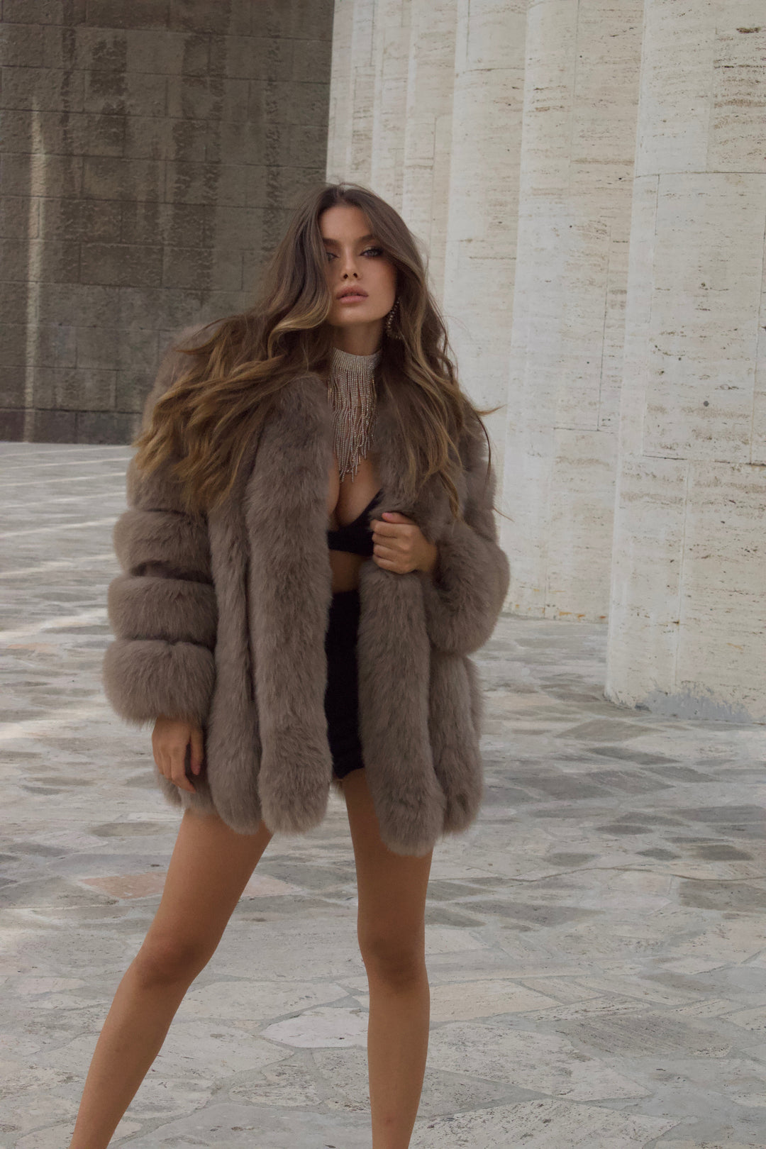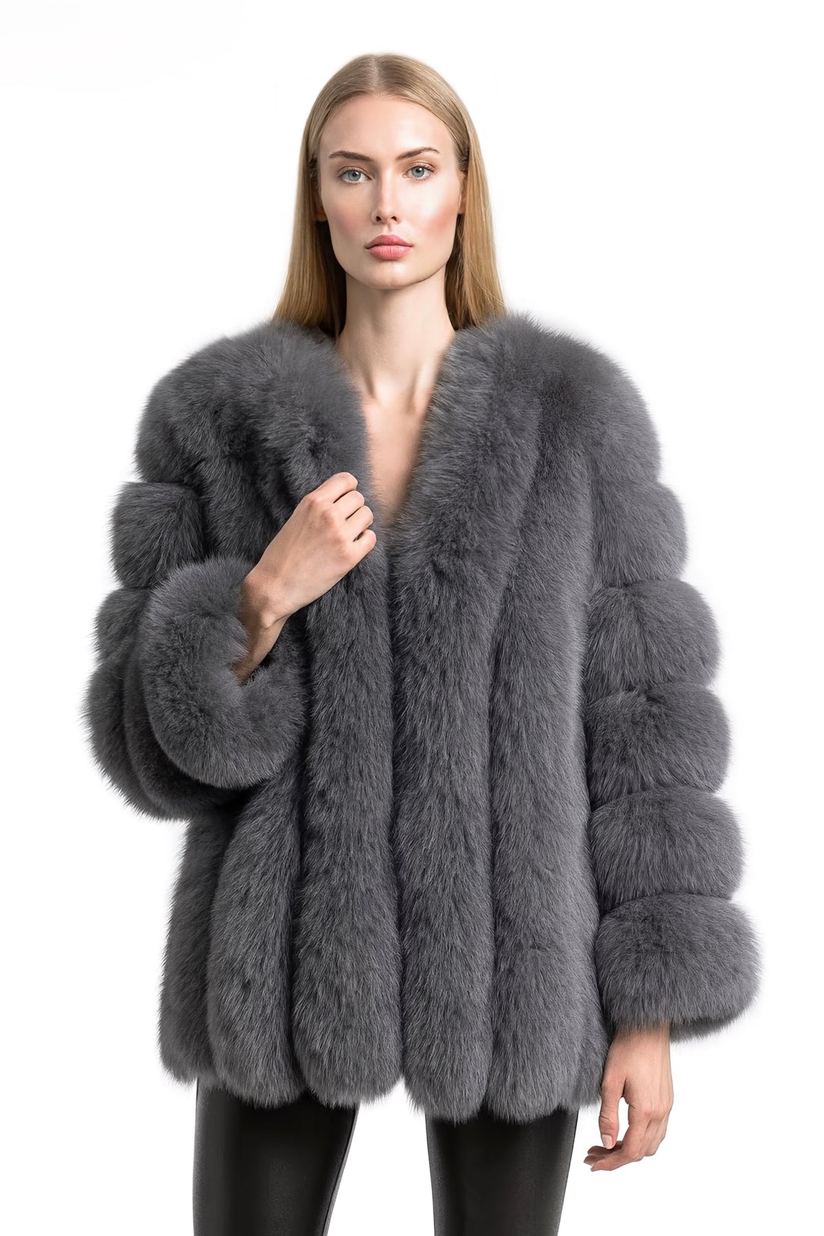 Giacca Paris Grigia Scuro in Pelliccia di Volpe