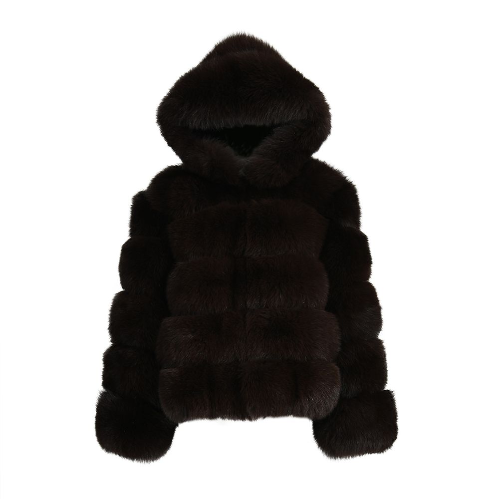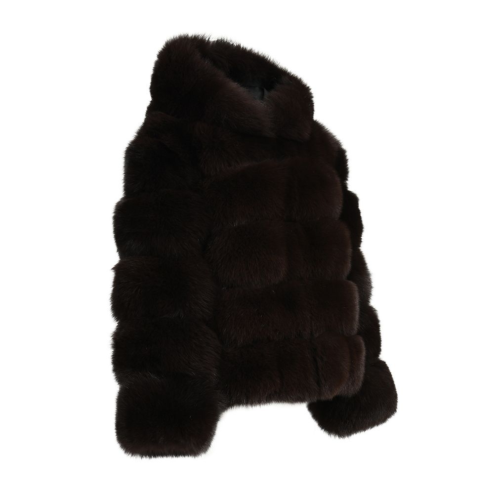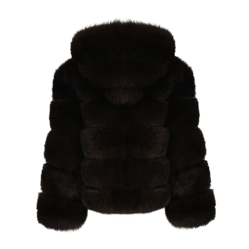 Giacca Saphira by Wanan Touch realizzata in soffice pelliccia di volpe. L'interno è in elegante e morbido raso e ha la chiusura con gancetti. Modello con cappuccio.