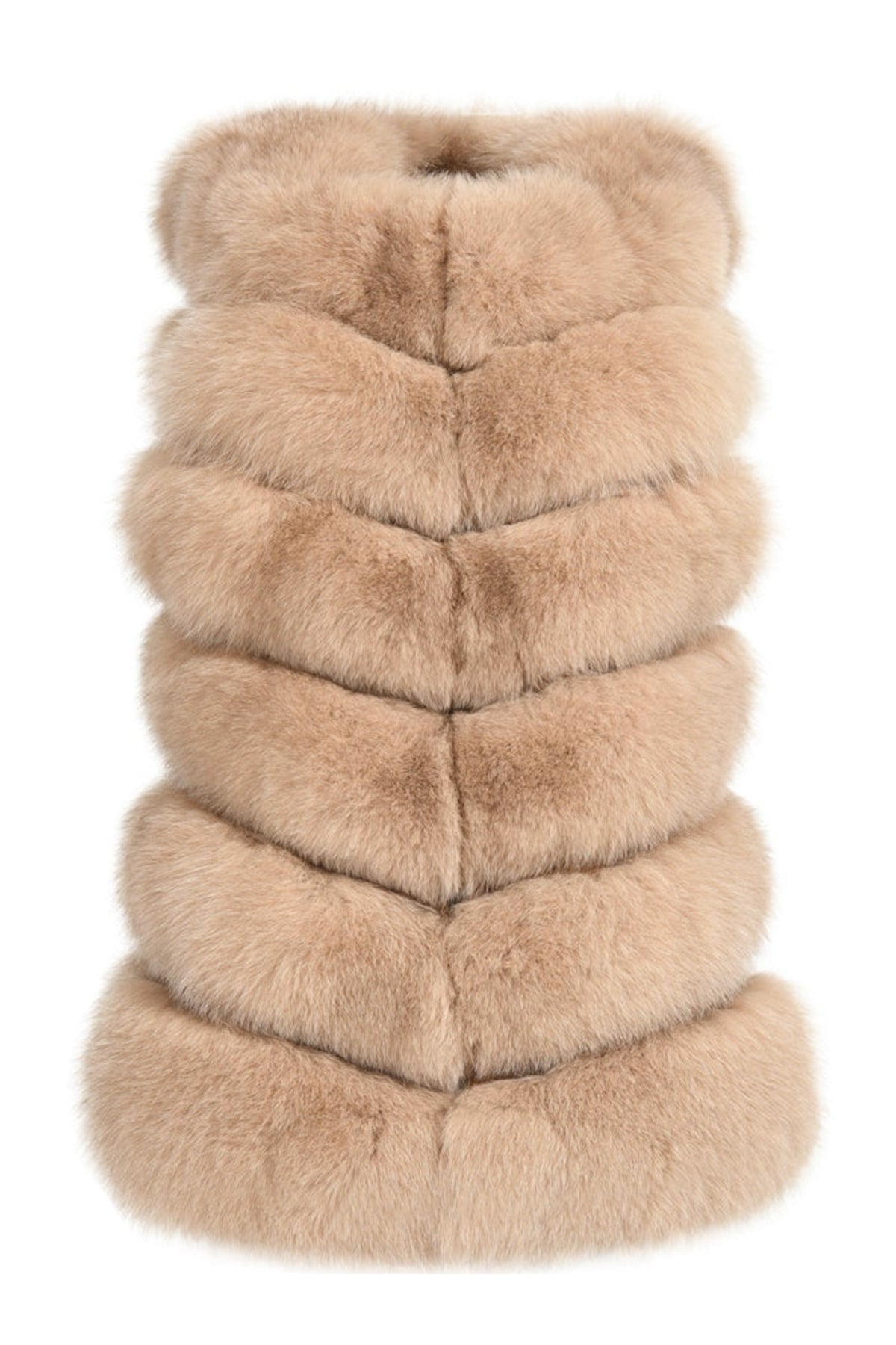 Wanan Touch giacca in pelliccia di volpe con chiusura a gancetti, modello senza maniche.