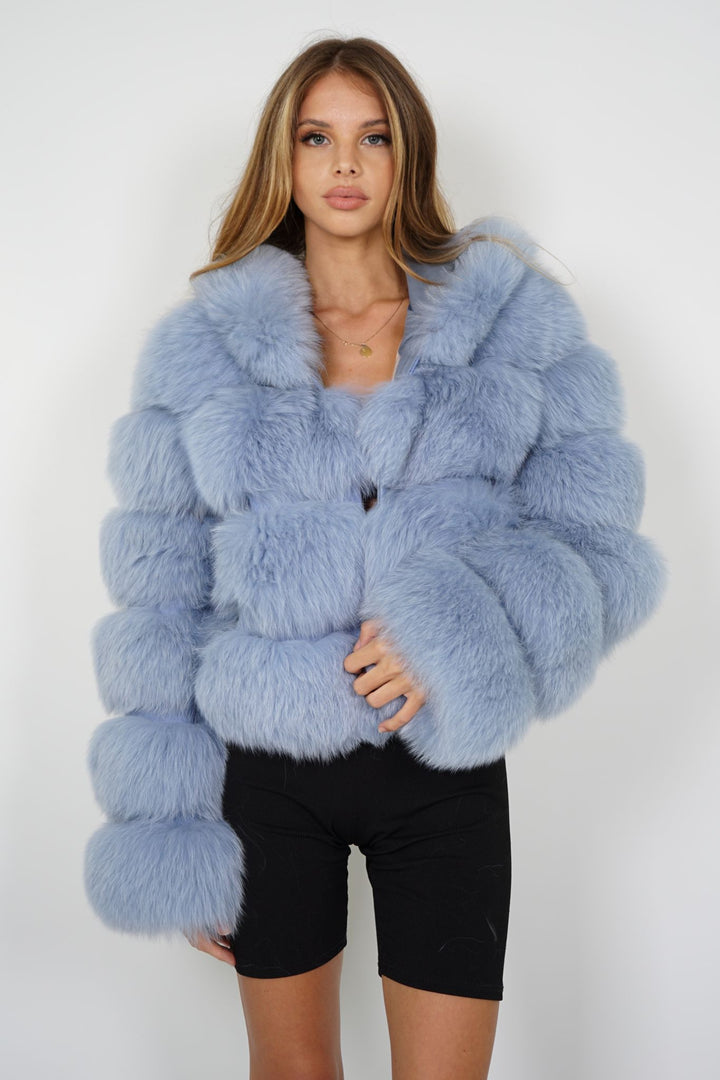 Questo coat by Wanan Touch è realizzata in soffice pelliccia di volpe. I colori sono tenui, adatti alla stagione invernale, ma soprattutto versatili. L'interno è in elegante e morbido raso e ha la chiusura con zip. Modello con cappuccio.