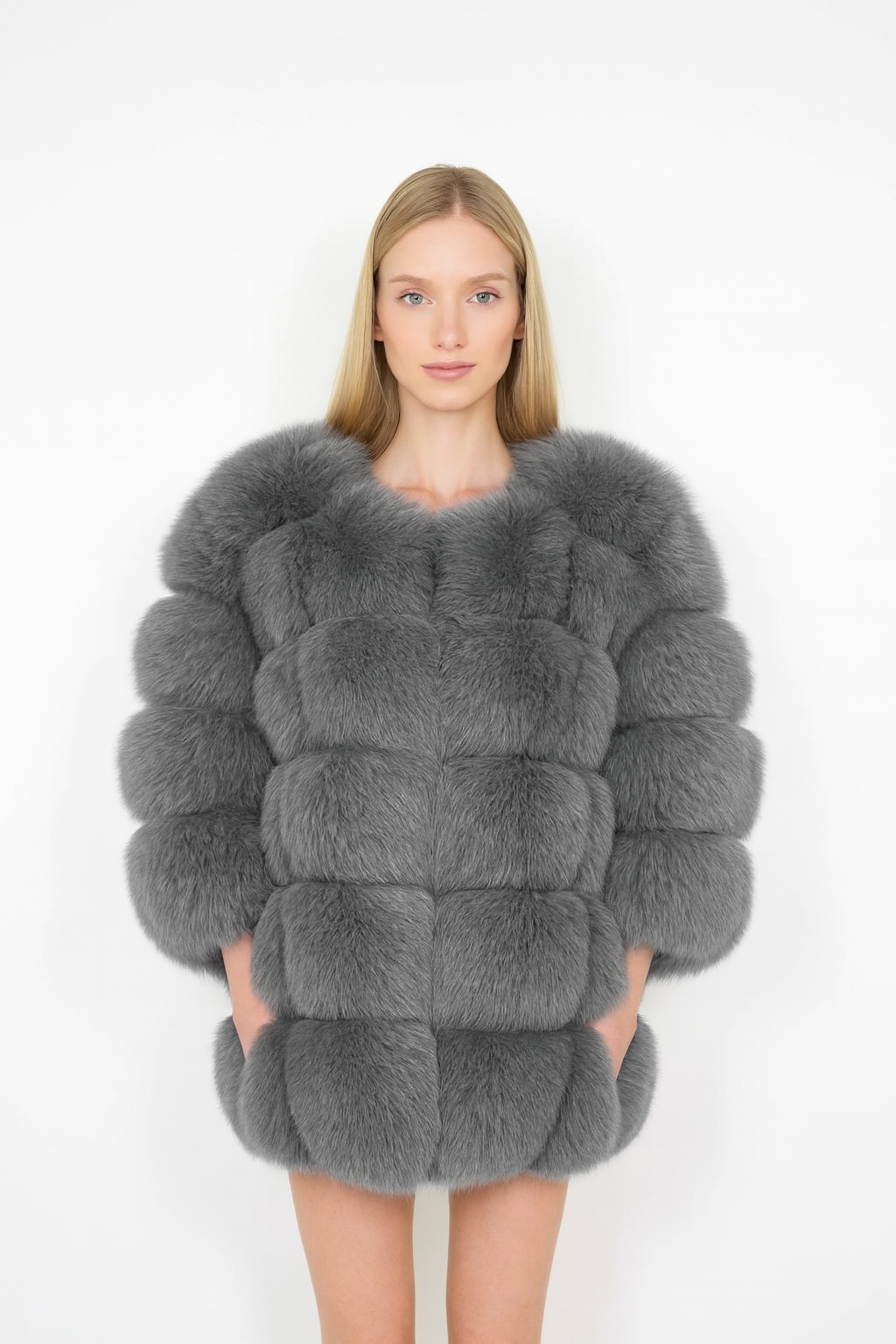 Giacca Classic Grigio Chiaro in Pelliccia di Volpe