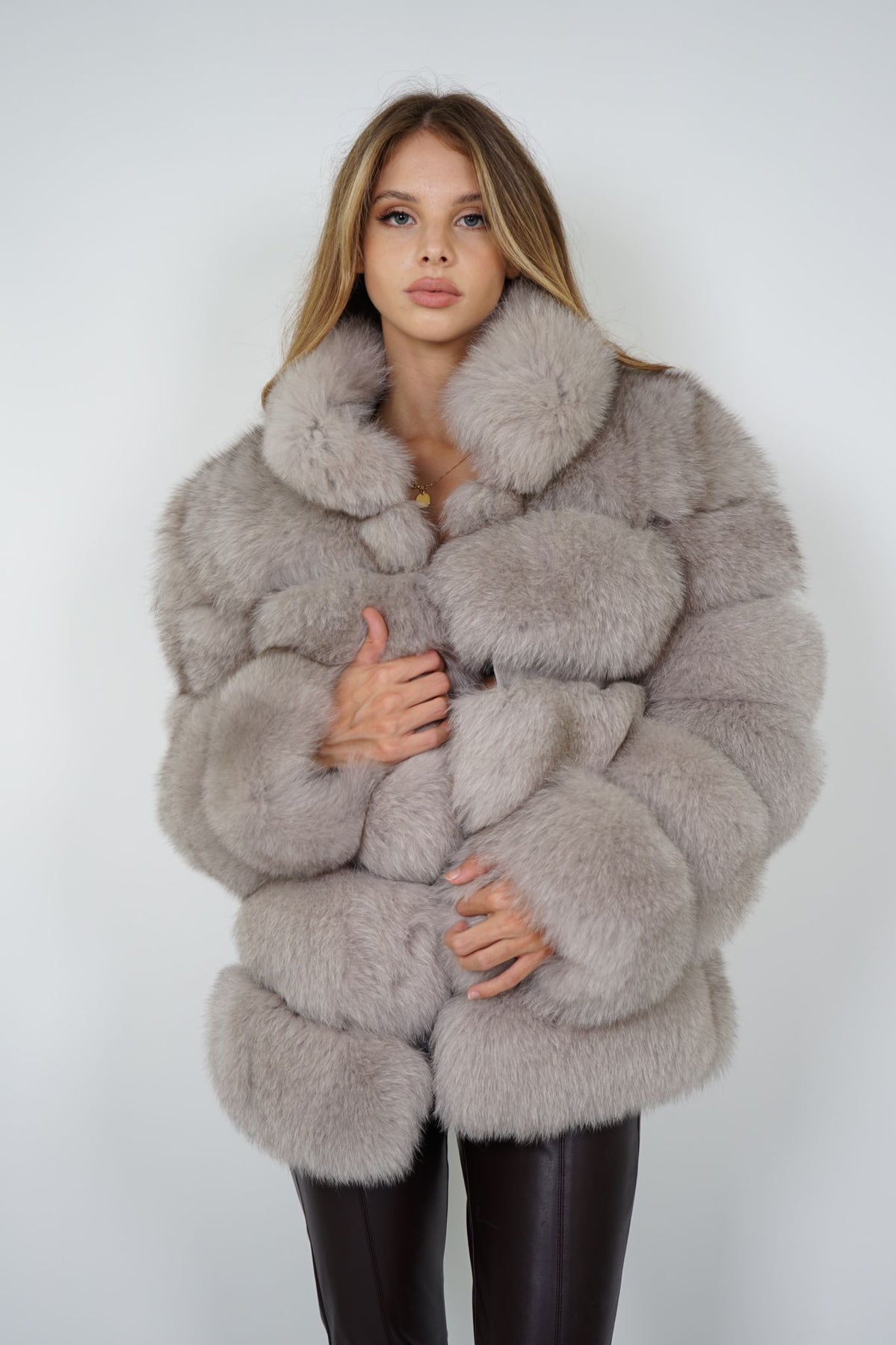 Wanan Touch giacca in pelliccia di volpe con chiusura a gancetti.