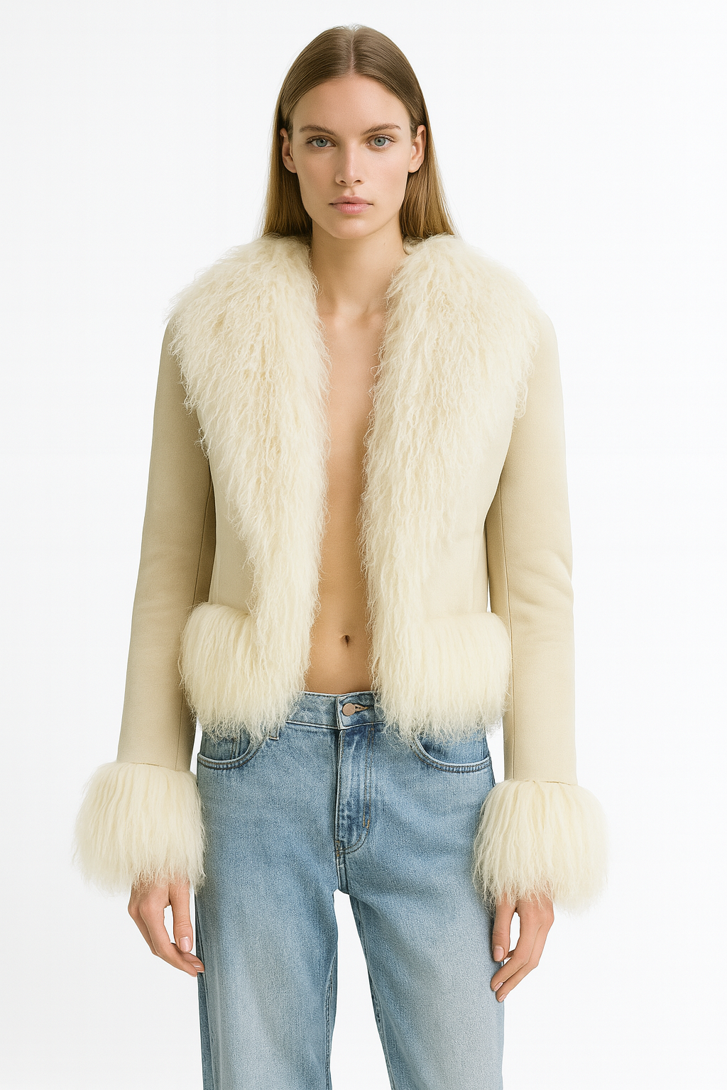 Giacca Lordes panna in camoscio e mongolia
