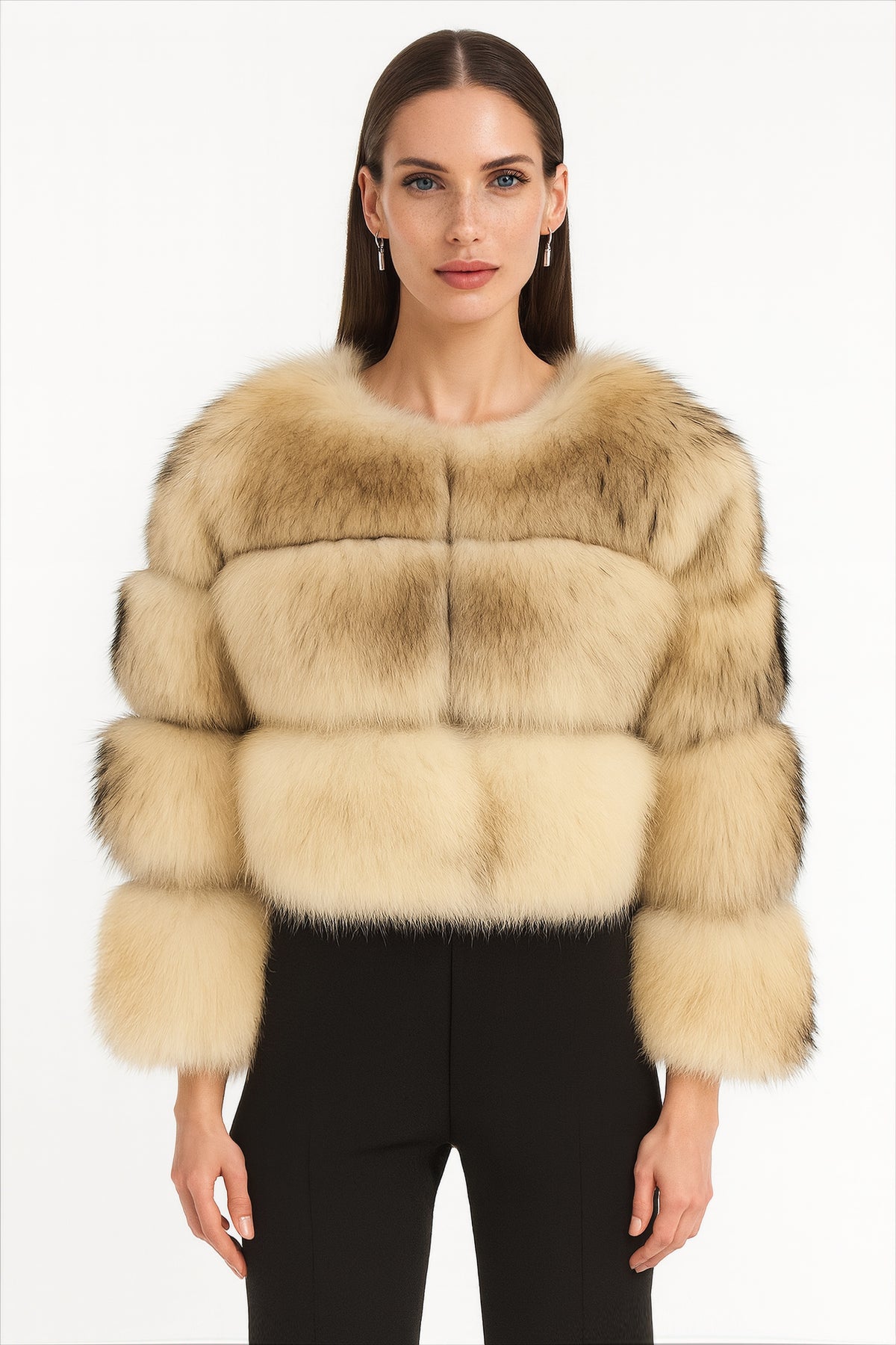 Per la stagione freddo ecco un capospalla unico e raffinato come la pelliccia in procione firmata Wanan Touch. Morbida, voluminosa ed elegante, in nuance beige con il suo design bomberino è perfetta con dei combat boots e dei pants in pelle.