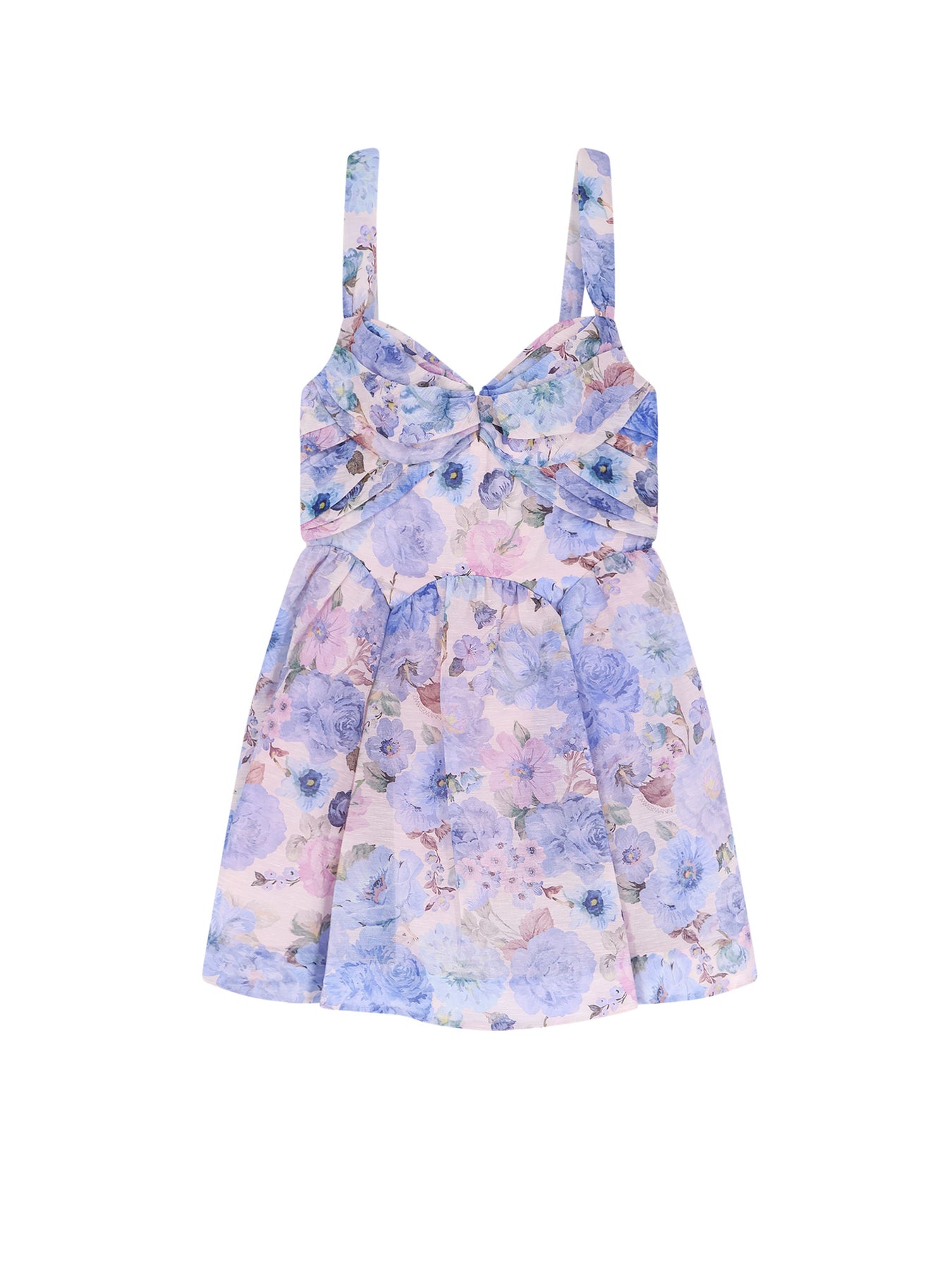 Back zip closure Underwired and draped neckline Sleeveless Multicolor floral print 55% linen, 45% silk Lining: 100% cotton SKU: 6493DC261SKBLM