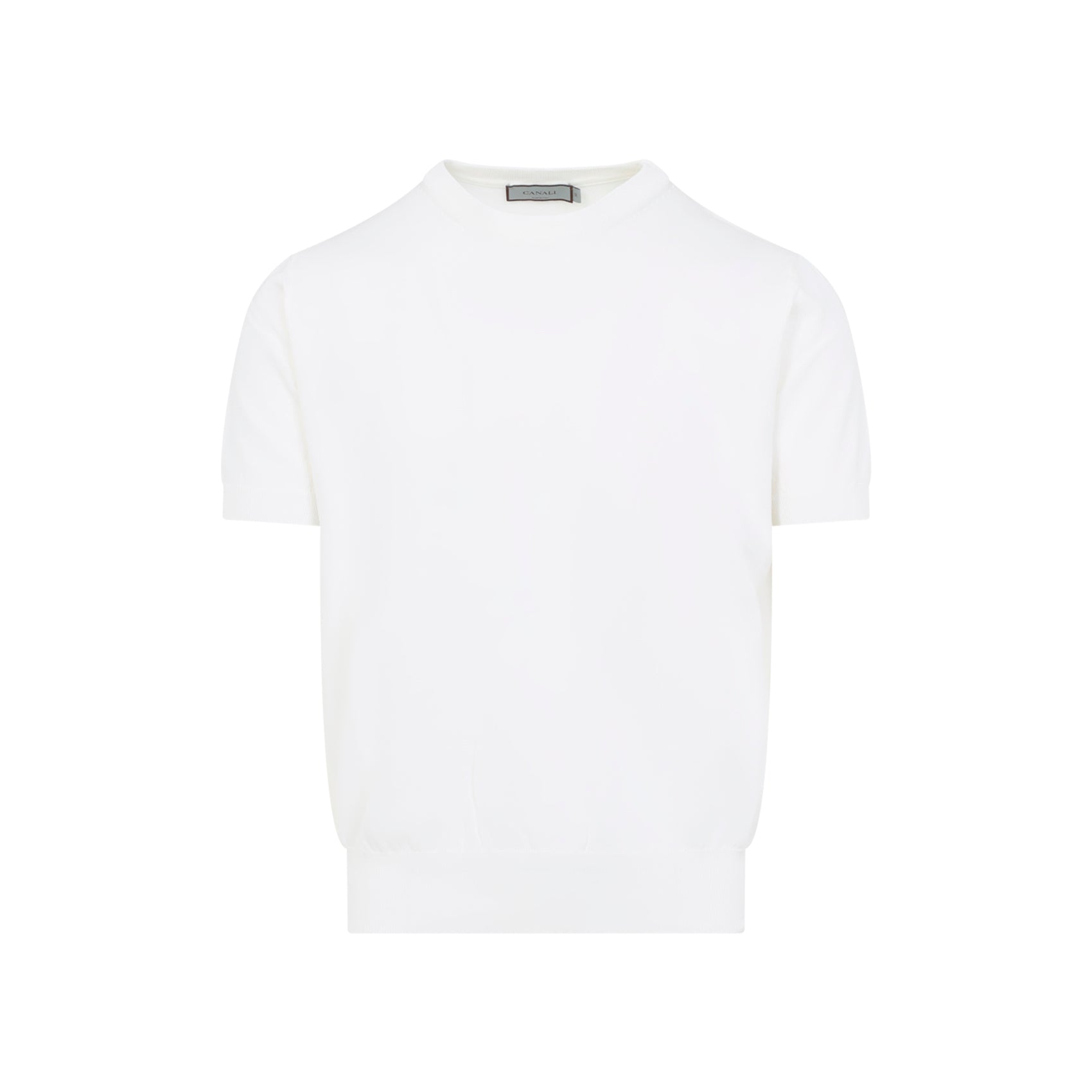 Canali White Cotton T-shirt. Crafted from white raised-stitching cotton, featuring a round collar, short sleeves, and ribbed edges.