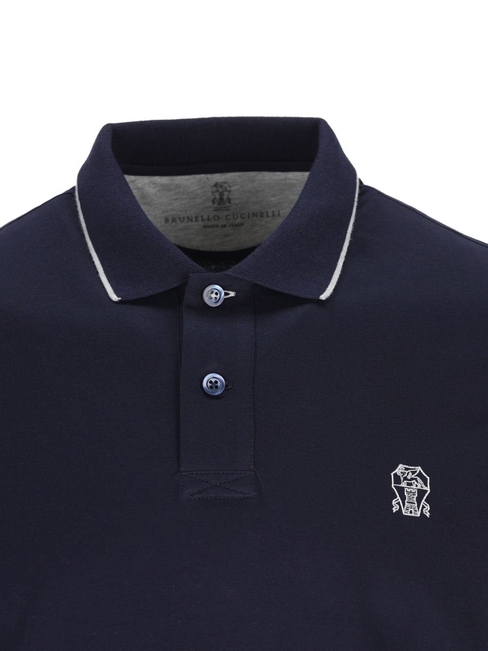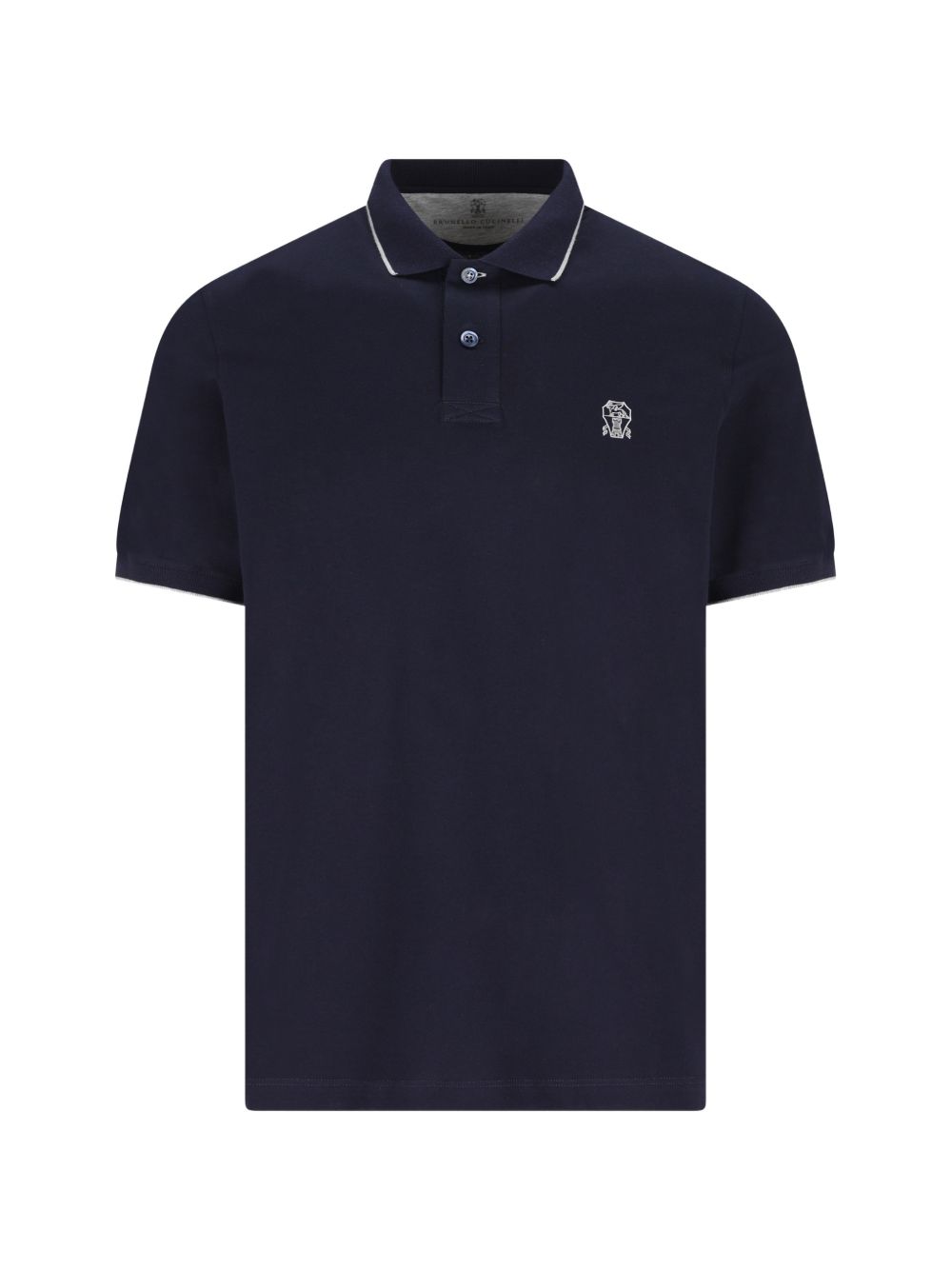 blue embroidered logo polo collar front button placket short sleeves straight hem