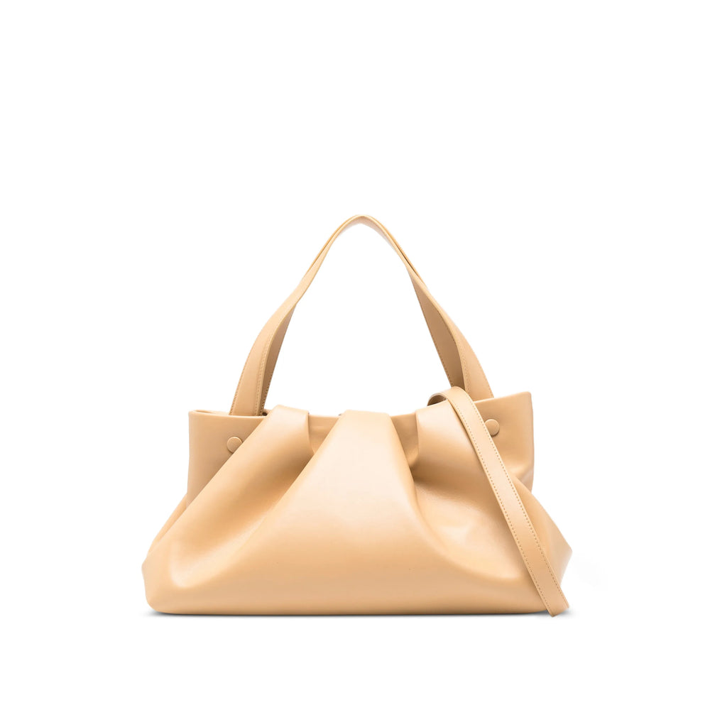 sand gathered detail top handle shoulder strap press-stud fastening This piece comes complete with a protective dust bag.