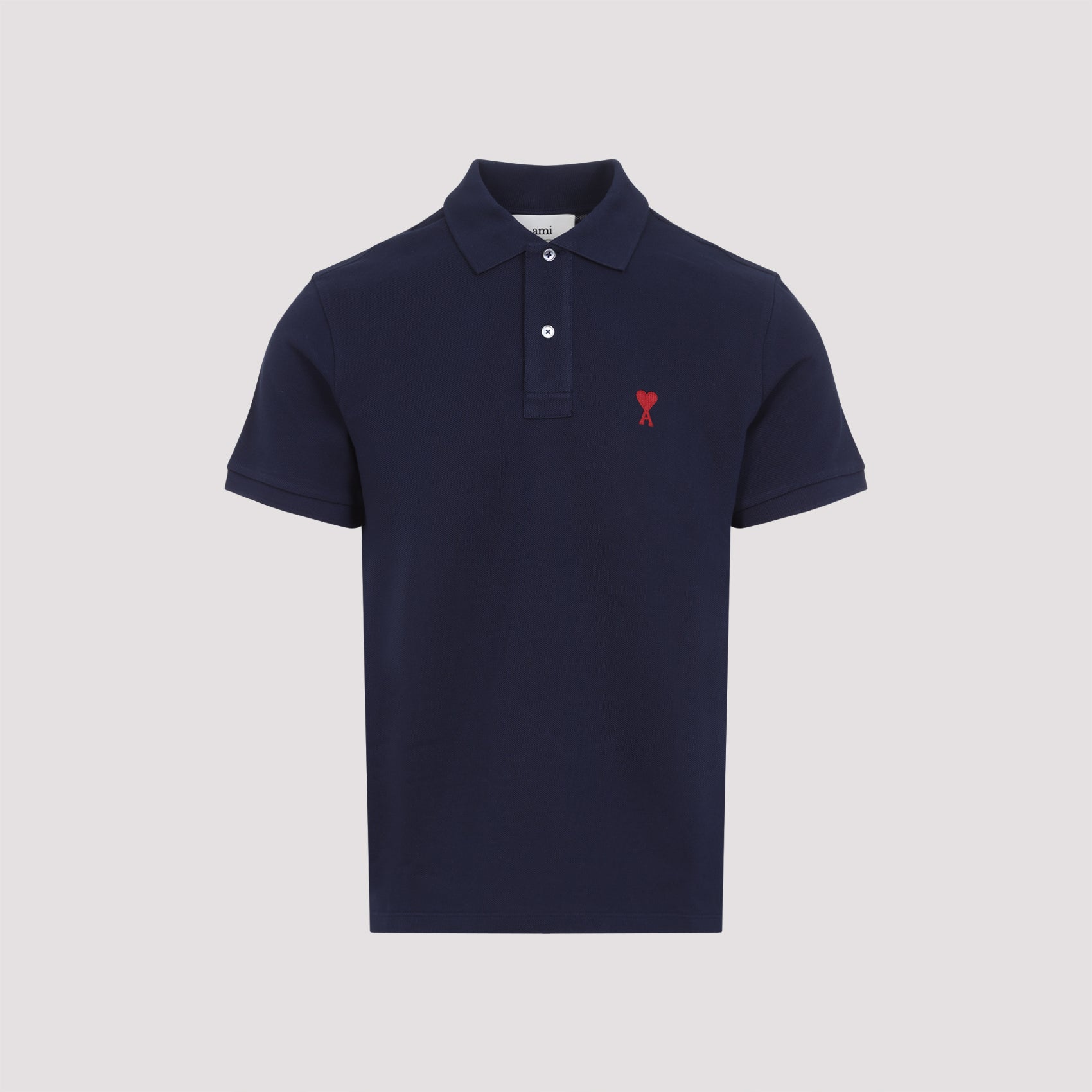 Polo Ami de coeur Night Blue. Cotone biologico Night Blue, colletto polo, maniche corte, chiusura con bottoni davanti, ricamo logo sul petto in rosso a contrasto. Orlo dritto, fit regolare.