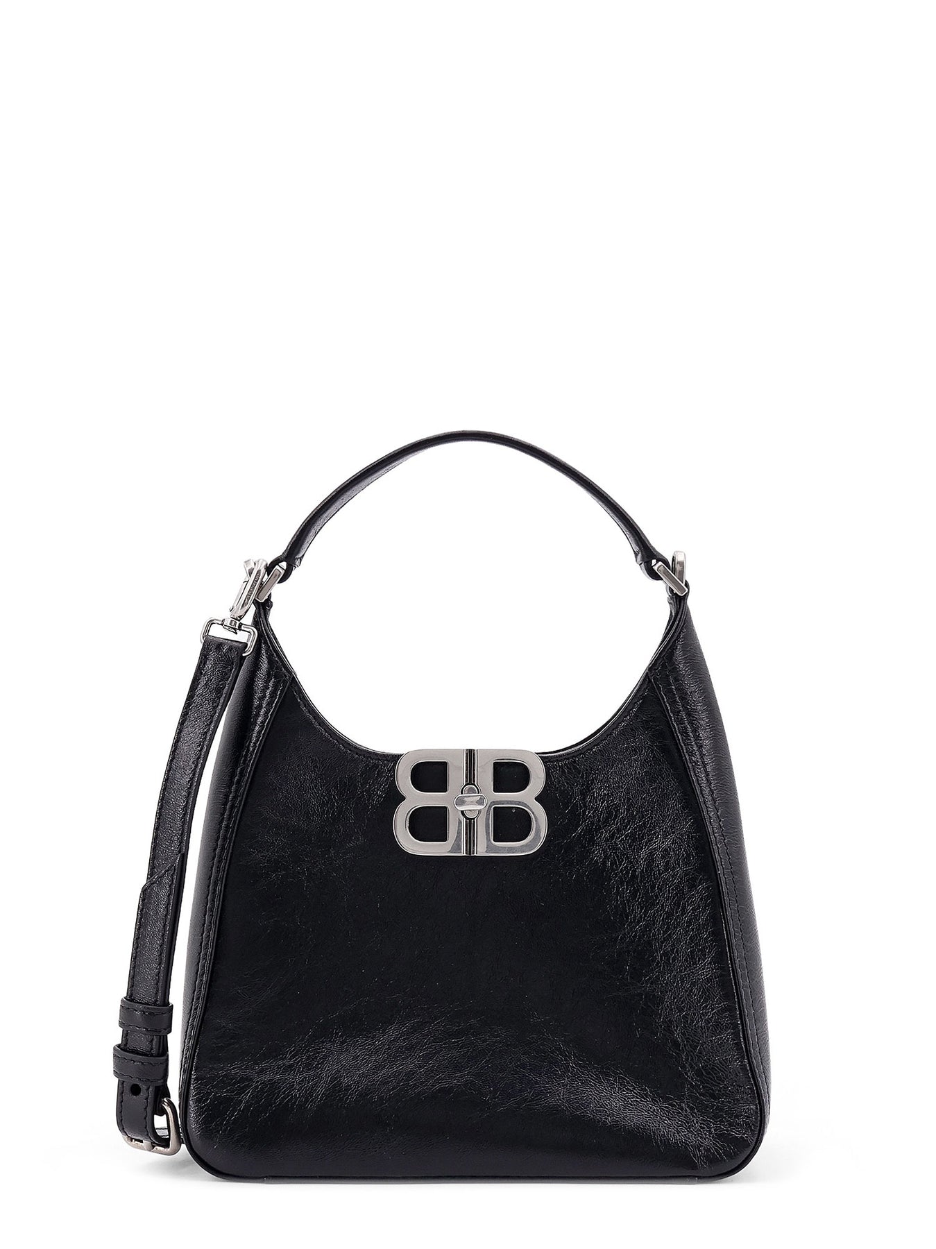 SKU: 8019282ABFJ_1000 - Leather handle and removable leather shoulder strap closure with metal walker bb logo metal detail on the front made in italy leather