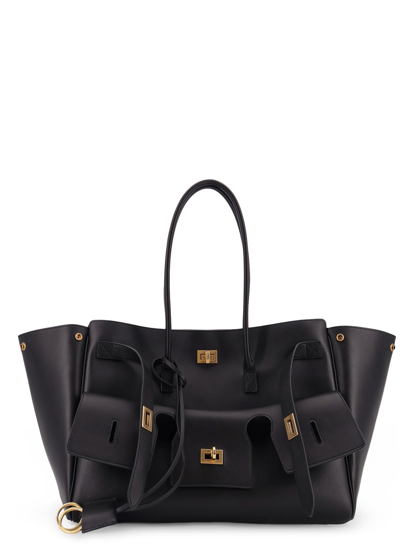 Double leather handle Front pocket with flap and metal detail Removable key ring with double spiral ring Logo engraving on the front Made in Italy Leather W: 37cm x H: 28cm x D: 17cm SKU: 8356702ABAV1000