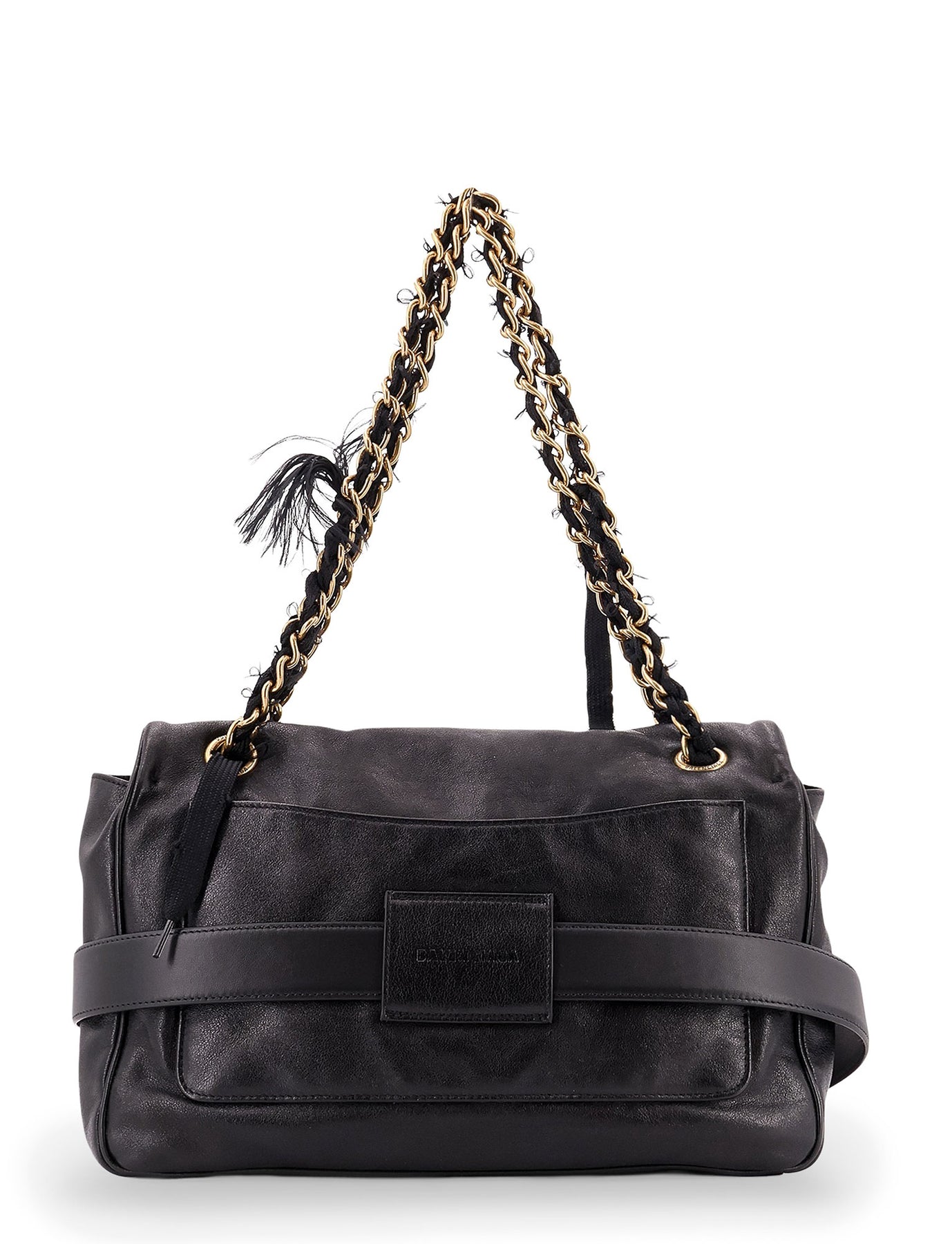 SKU: 8117812ABIW_1060 - Flap and walker closure removable and adjustable chain shouder strap with fabric inserts one main compartment and two internal pockets made in italy leather