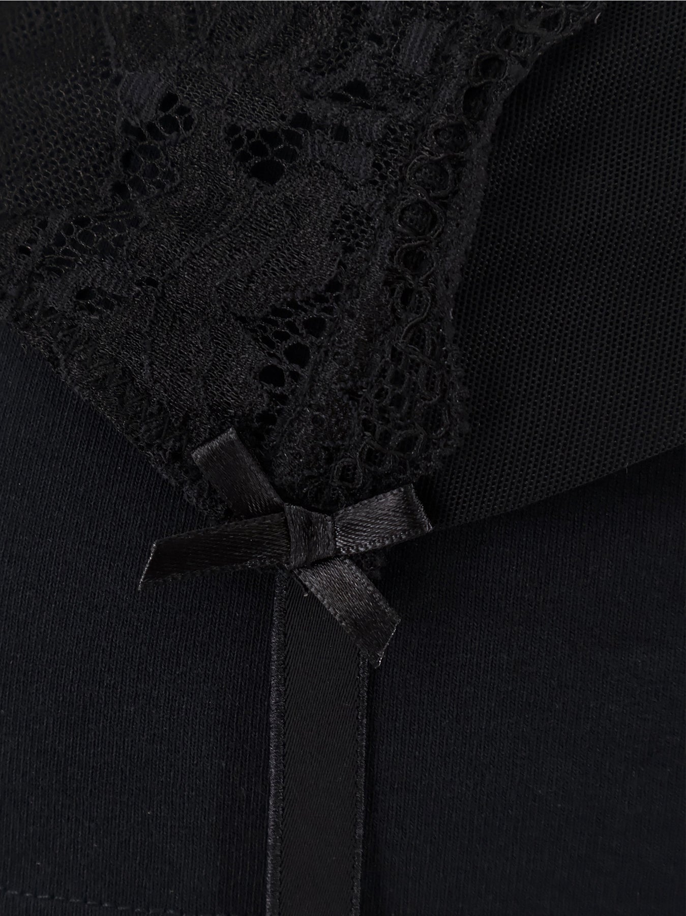 Ribbed crew-neck Short sleeves Guepiere detail Regular fit 95% cotton 5% elastane SKU: 828869TNVB2_1083