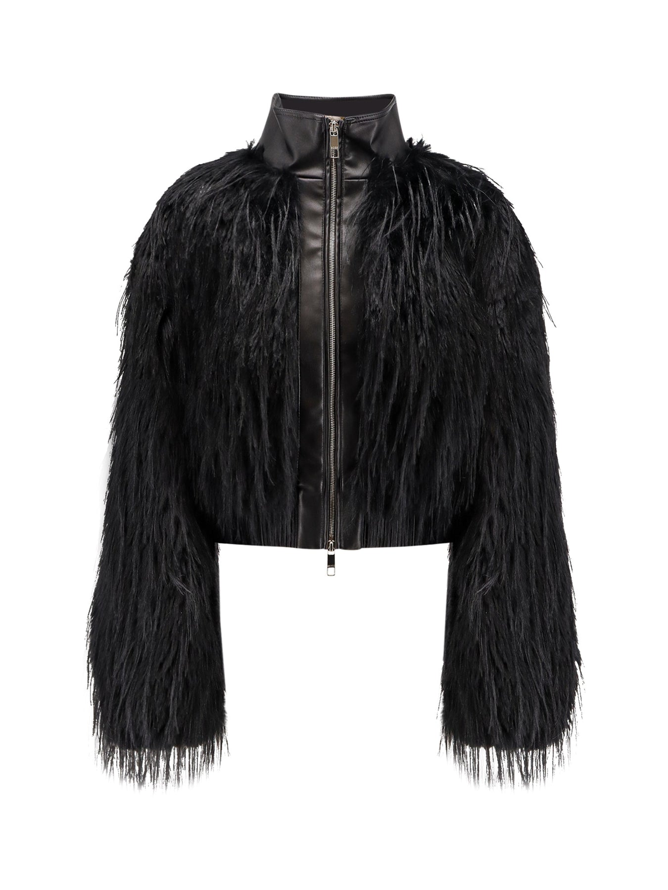 Zip closure with two-way zip All-over feather detail Ribbed elastic bottom Lined 100% polyester Lining: 100% polyester SKU: 50548357001