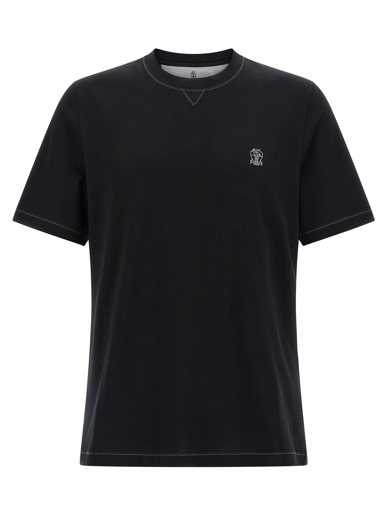 Brunello Cucinelli Logo Embroidery T shirt - Nero | 39433cf1e5b157230b18e2691833055d797142e1