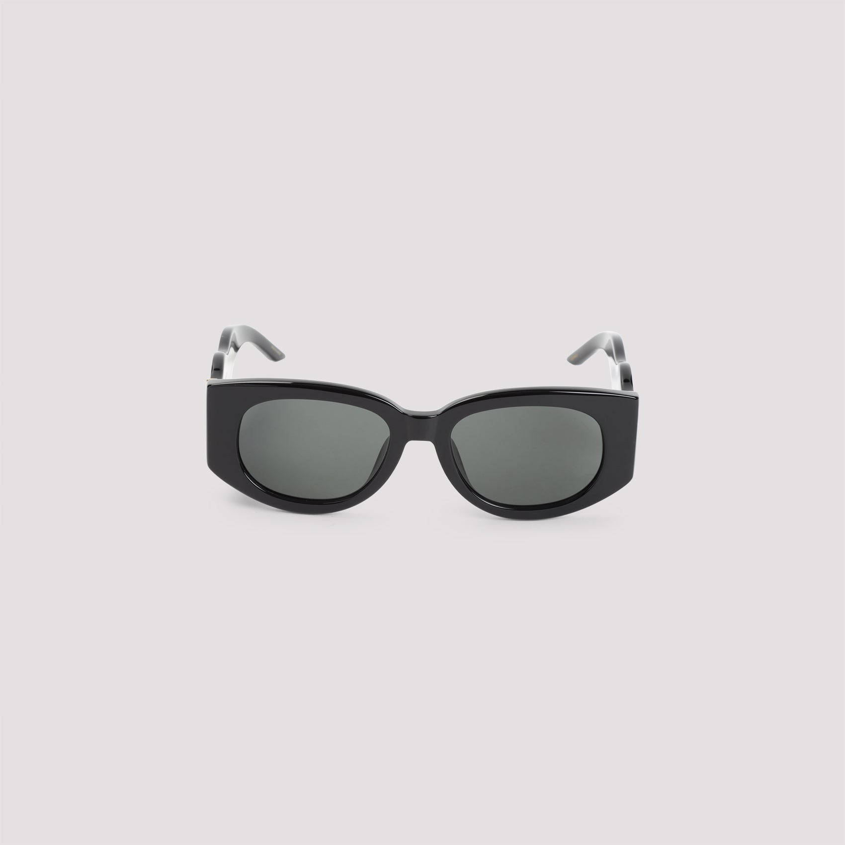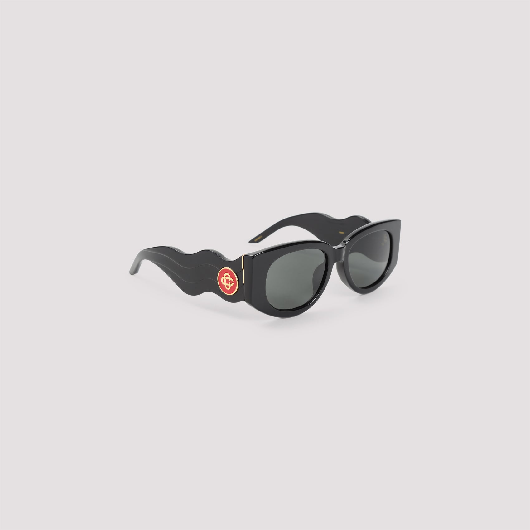 Casablanca Metal Oval Wave Black Acetate Sunglasses. Crafted from black acetate, tonal lenses, oval-shaped frame, waved and bold temples, enameled round logo on the sides.