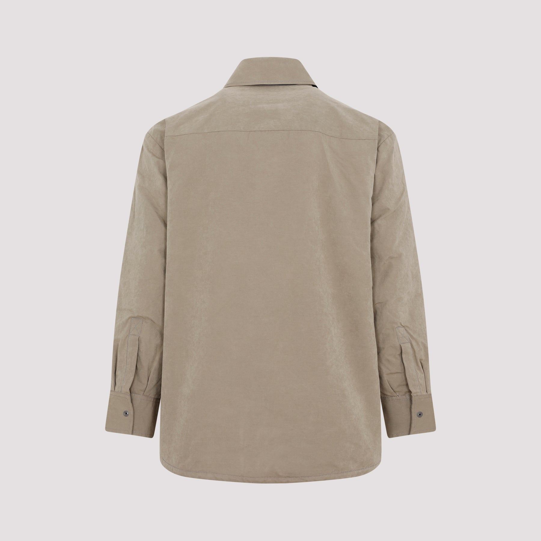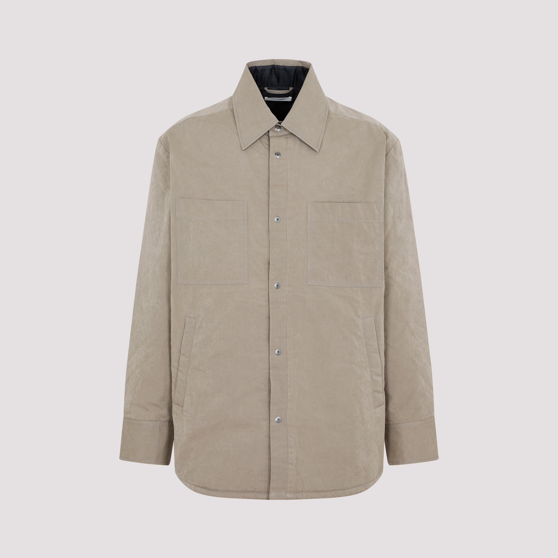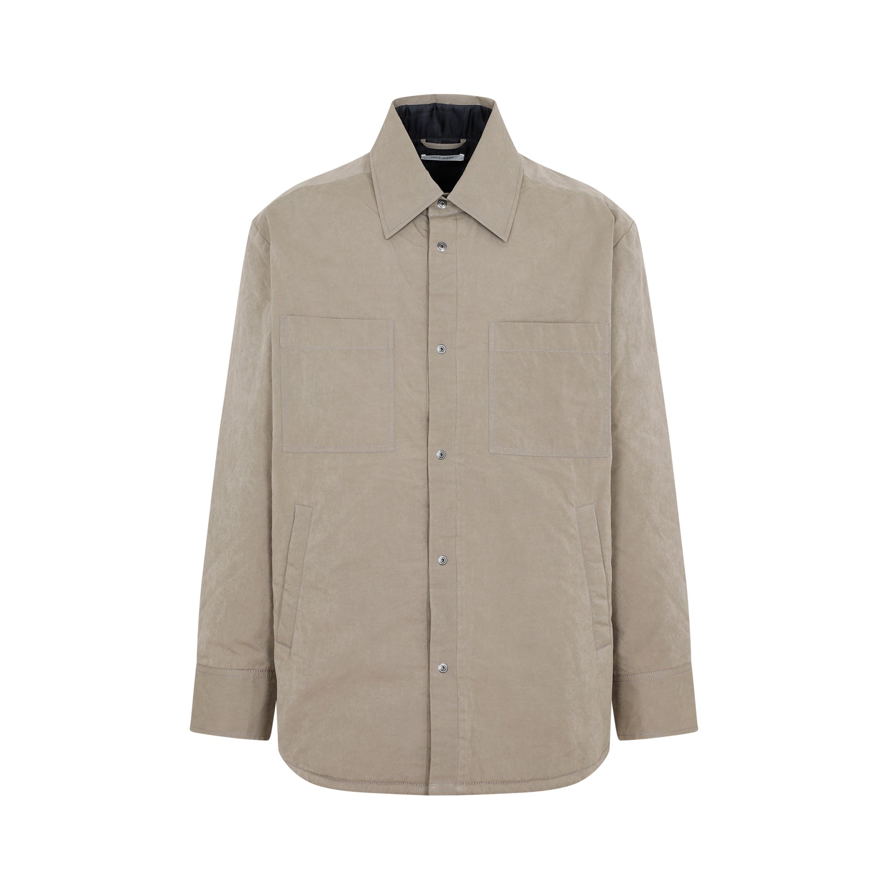 Craig Green Green Padded Worker Shirt. Crafted in a green blend of cotton and tech fabrics. Pointed collar, long sleeves, front snap button fastening, two chest patch pockets, two sides slit pockets, round hem, snap buttons on the cuffs, padded.