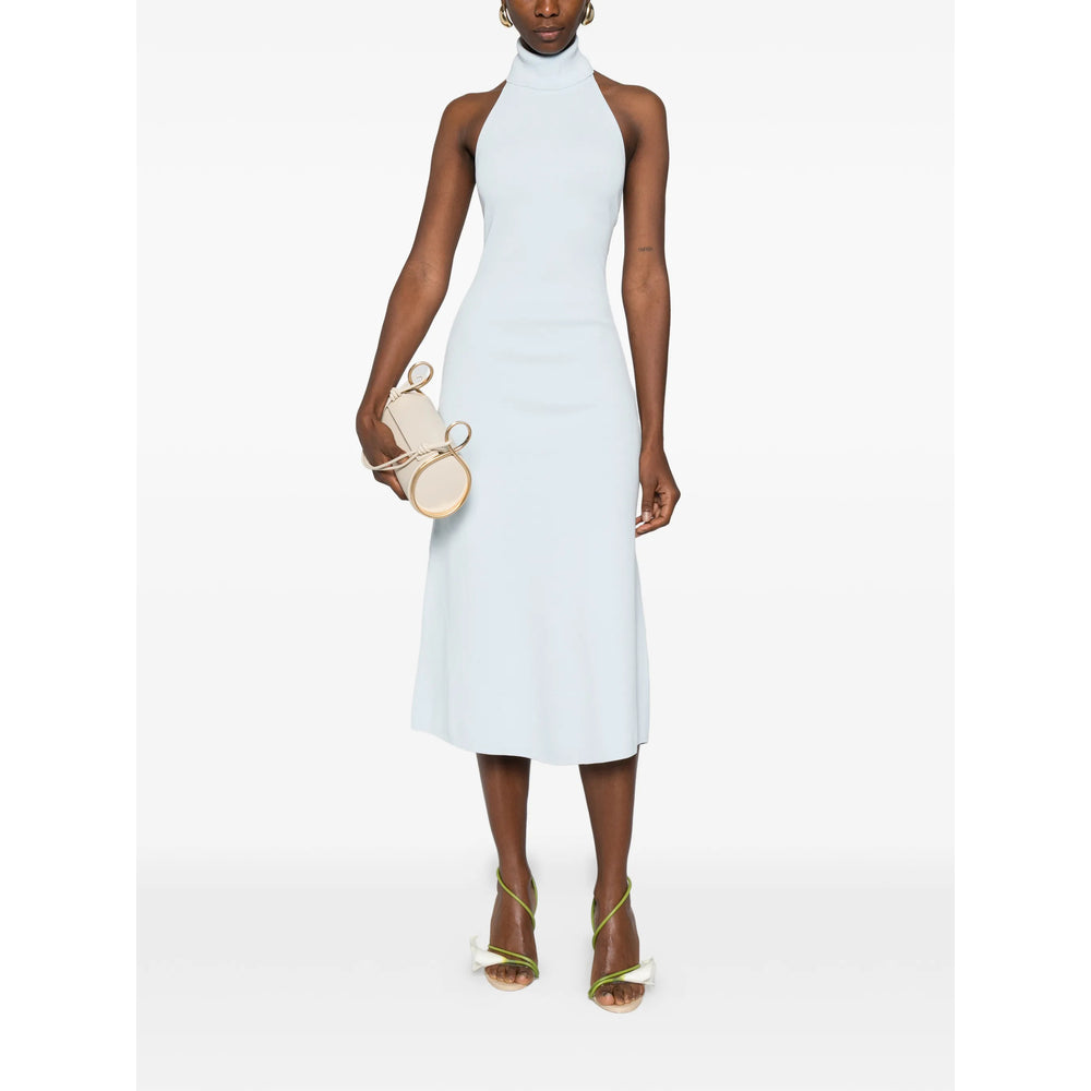 light blue high neck sleeveless halter neck funnel neck concealed zip fastening