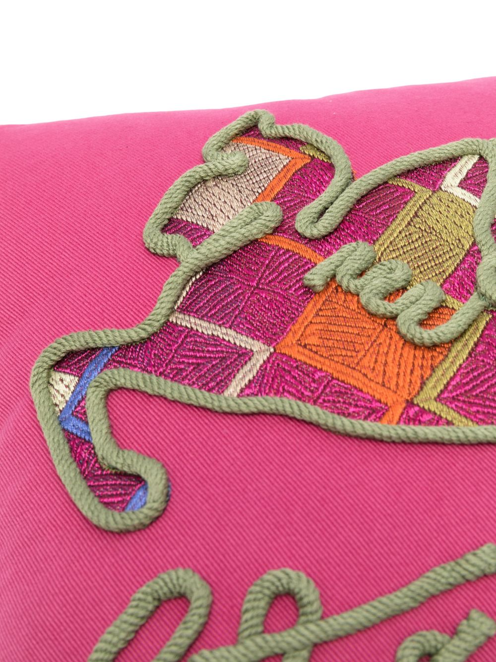 Cuscino con ricamo rosa, design ricamato e design squadrato. Origine: Italia Composizione 100% Cotone Inserto 88% Viscosa 12% Poliammide Imbottitura 100% Poliestere Istruzioni per il lavaggio Lavare solo a secco ID brand: 495519211