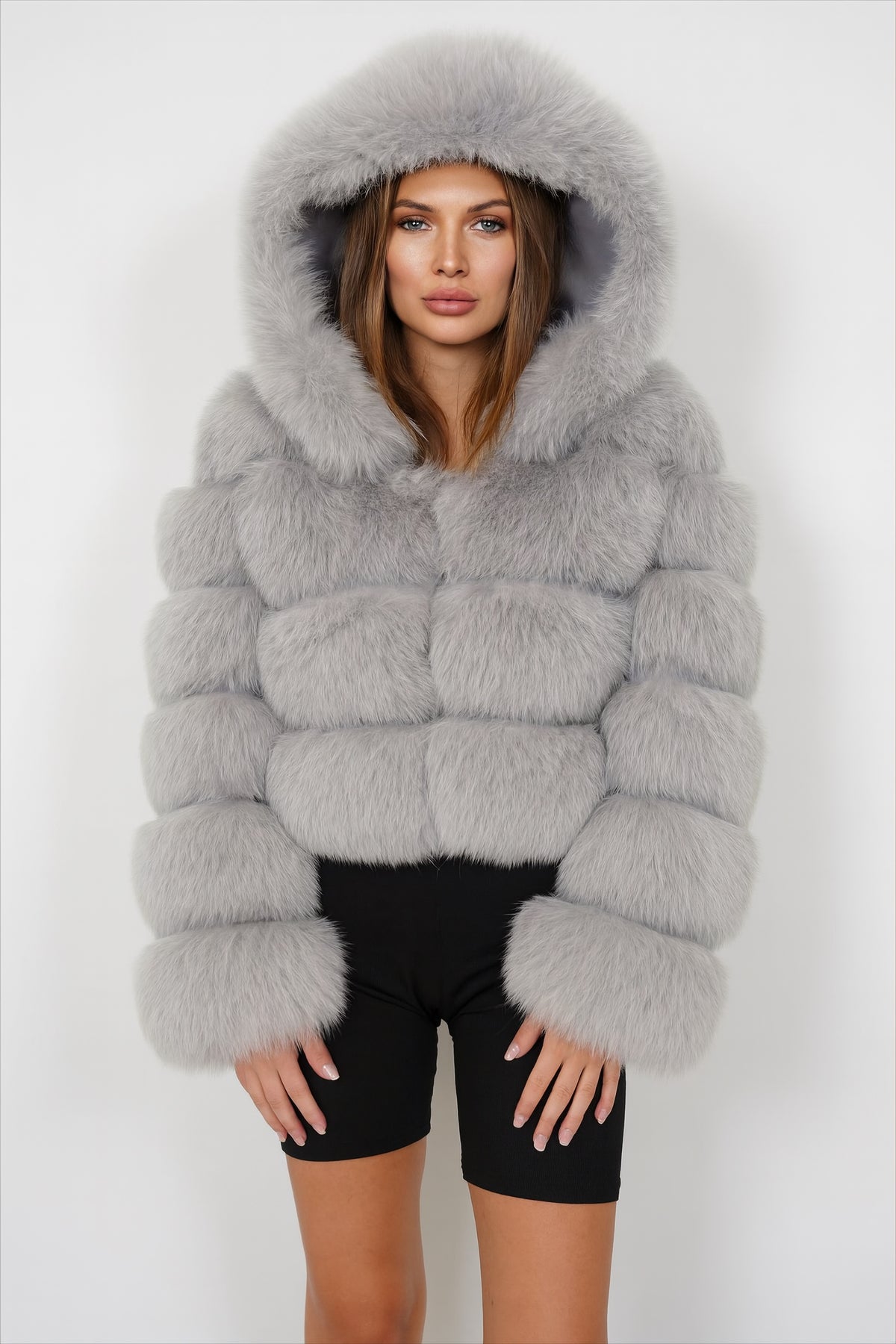 Questo coat by Wanan Touch è realizzata in soffice pelliccia di volpe. I colori sono tenui, adatti alla stagione invernale, ma soprattutto versatili. L'interno è in elegante e morbido raso e ha la chiusura con gancetti. Modello con cappuccio.