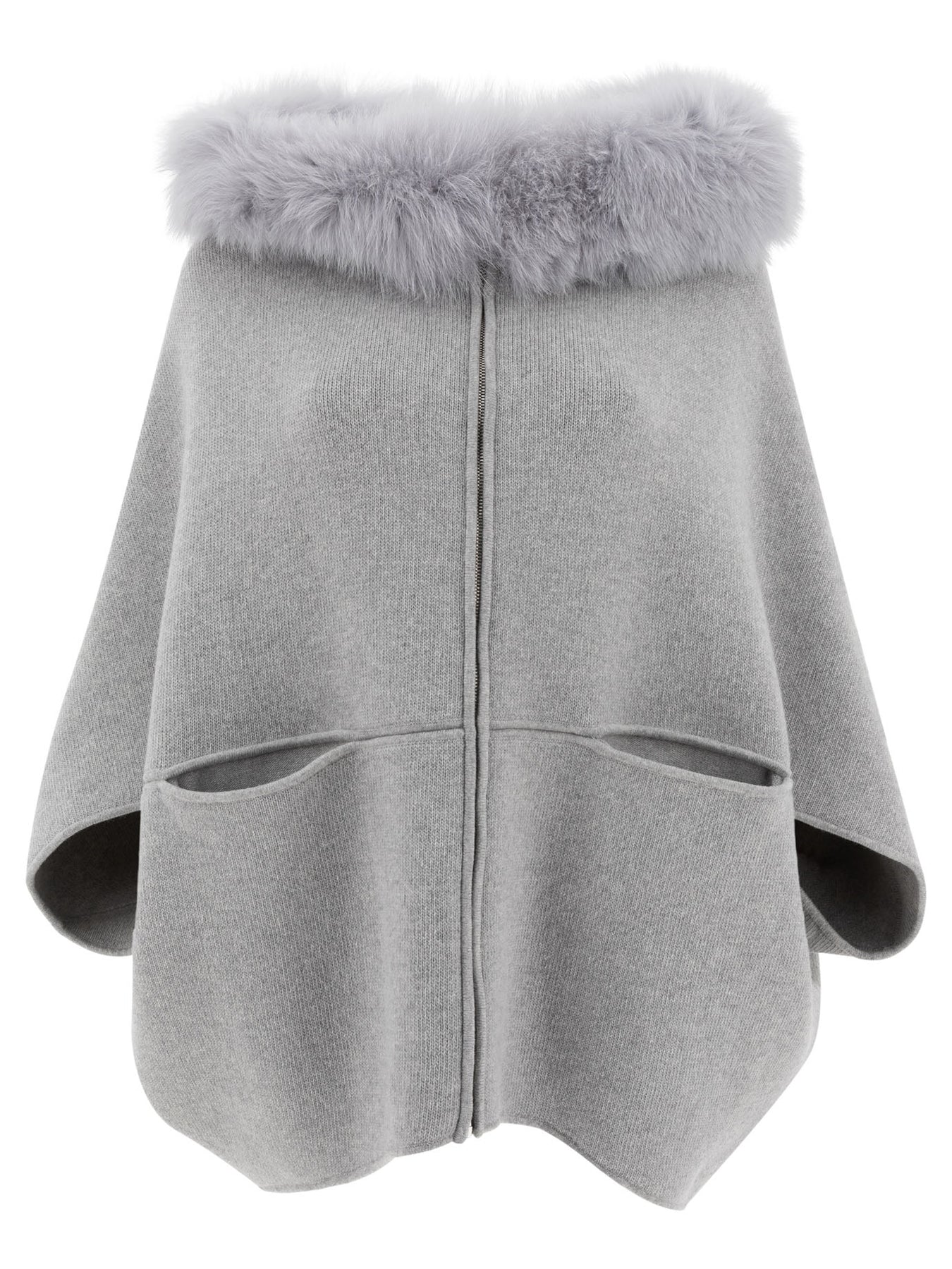 Wool And Cashmere Poncho Jackets And Coats Grey