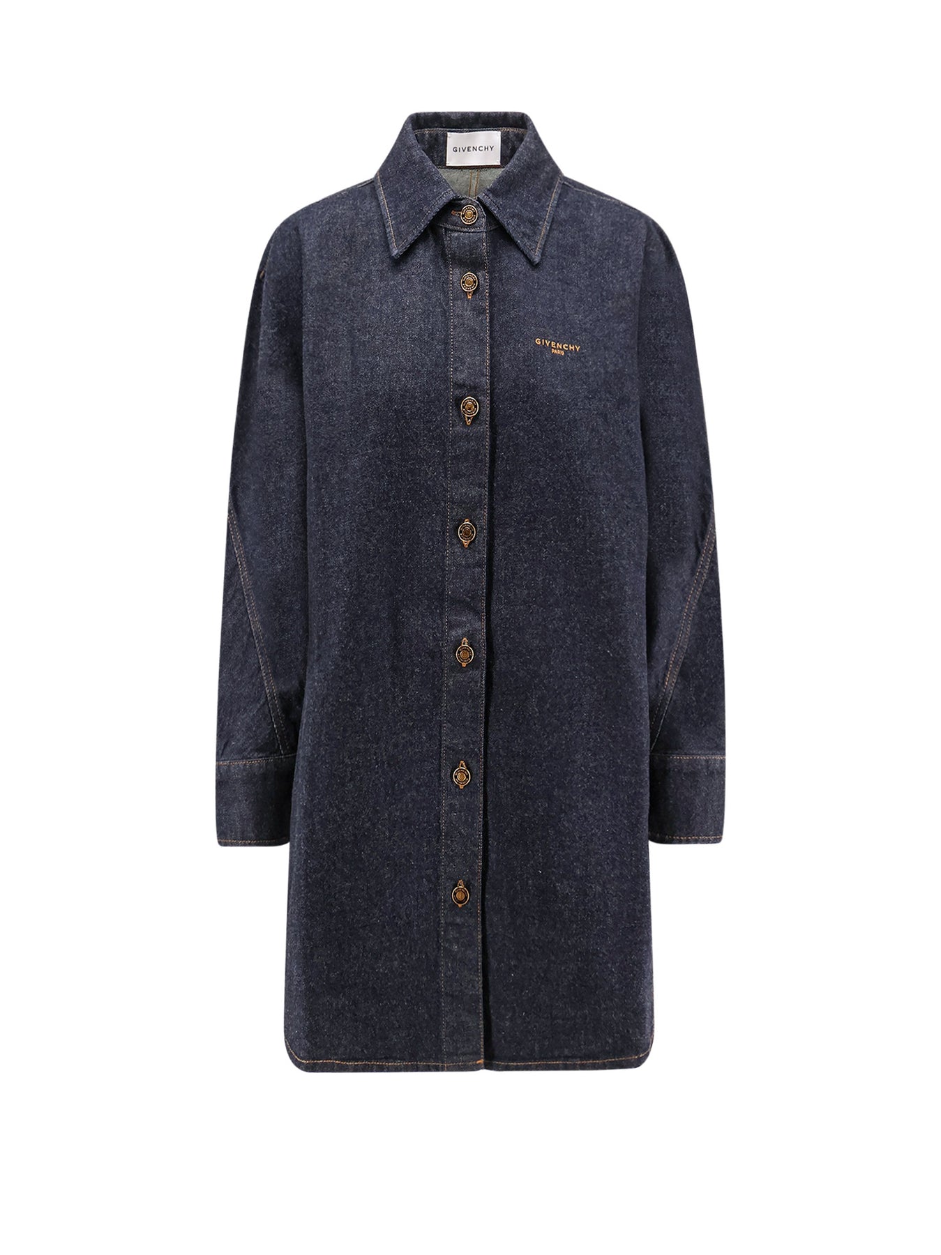 Closure with logoed metal buttons Classic pointed collar and logo embroidery on the front Long sleeves with buttoned cuffs Asymmetric hem 100% cotton SKU: BW61F1516P401