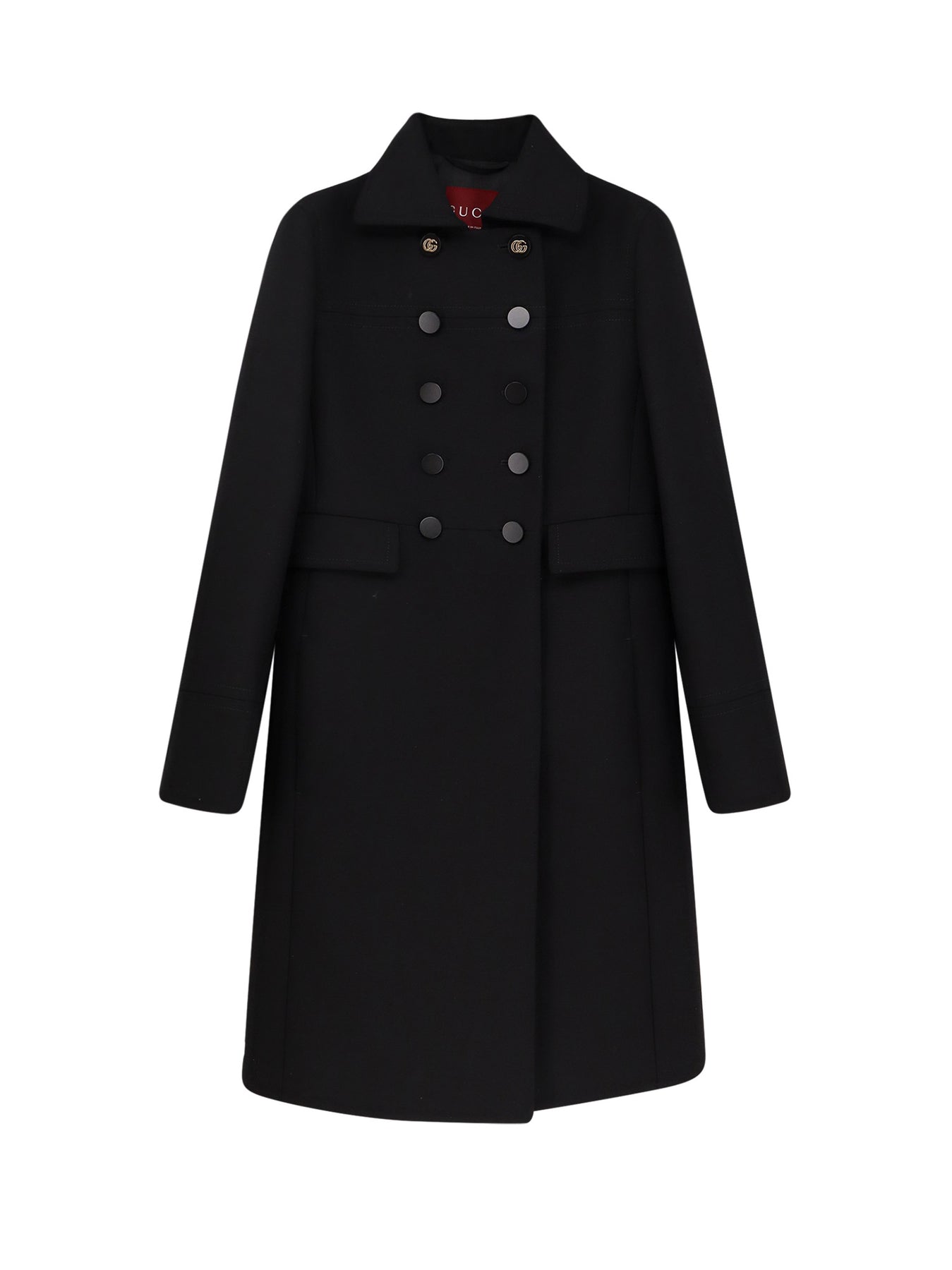 Button closure and pointed collar Front flap pockets and side welt pockets Cuff with GG button Made in Italy 100% wool Lining: 100% viscose SKU: 823841Z7ASS1000