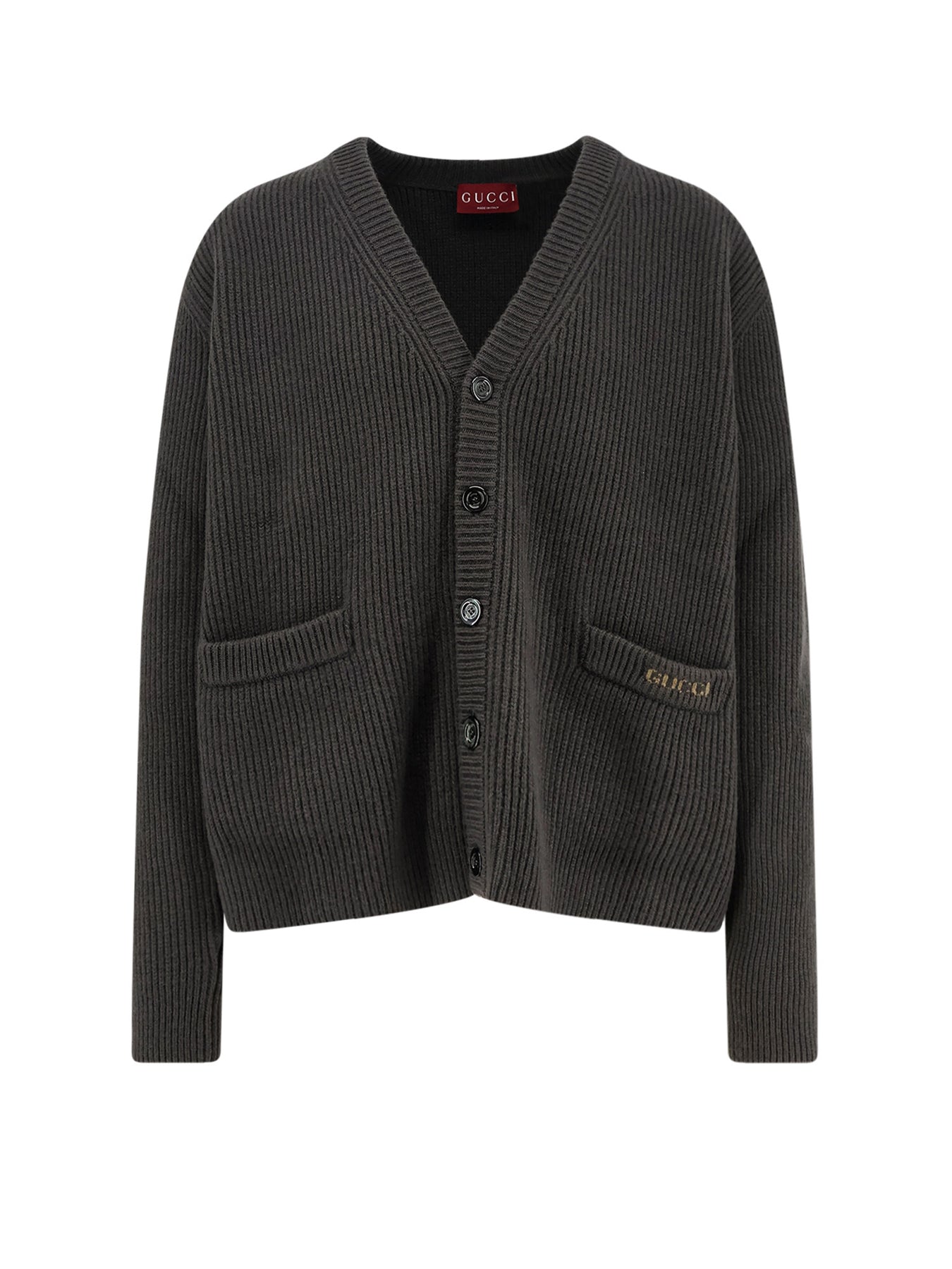 Button closure and V-neckline Two front pockets Lettering logo on the left pocket Made in Italy 70% wool, 30% cashmere SKU: 833501XKEYK3019