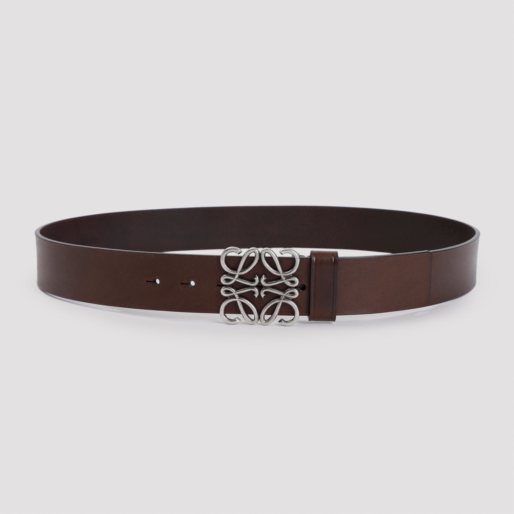 Loewe Dark Cigar Brown Calf Skin Chunky Anagram 4Cm Belt. Pure dark cigar brown calf skin belt, adjustable design, belt loop, front anagram vintage palladium buckle.